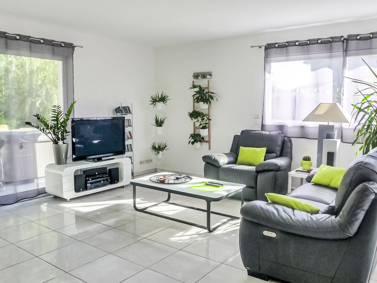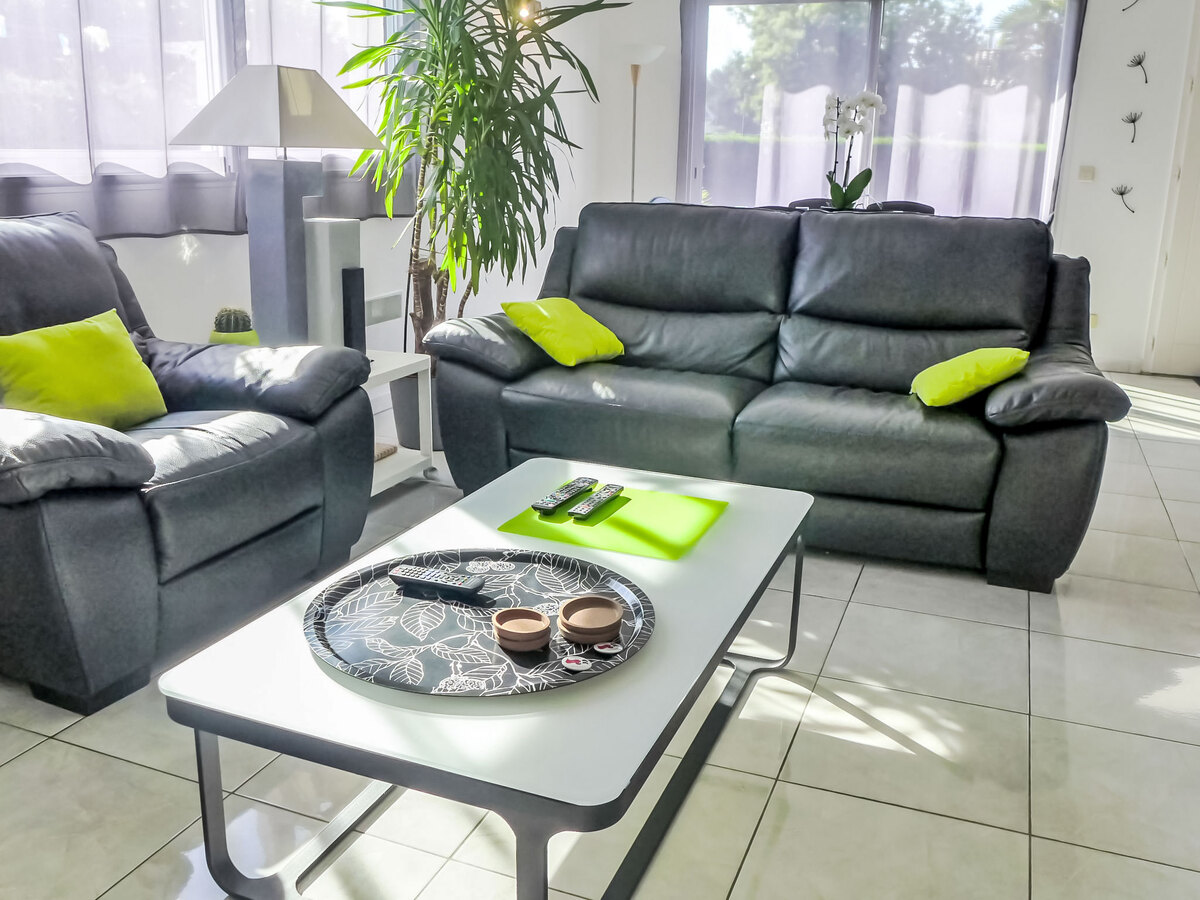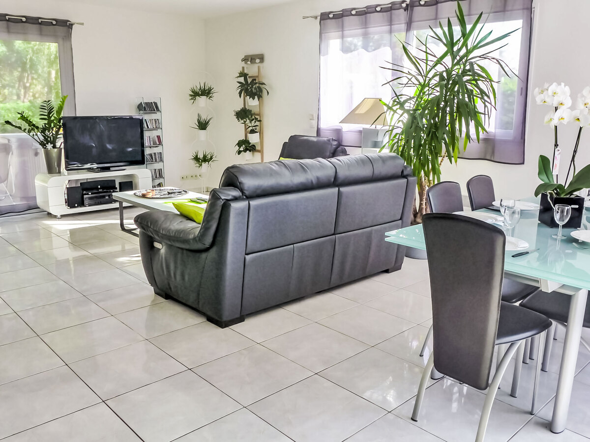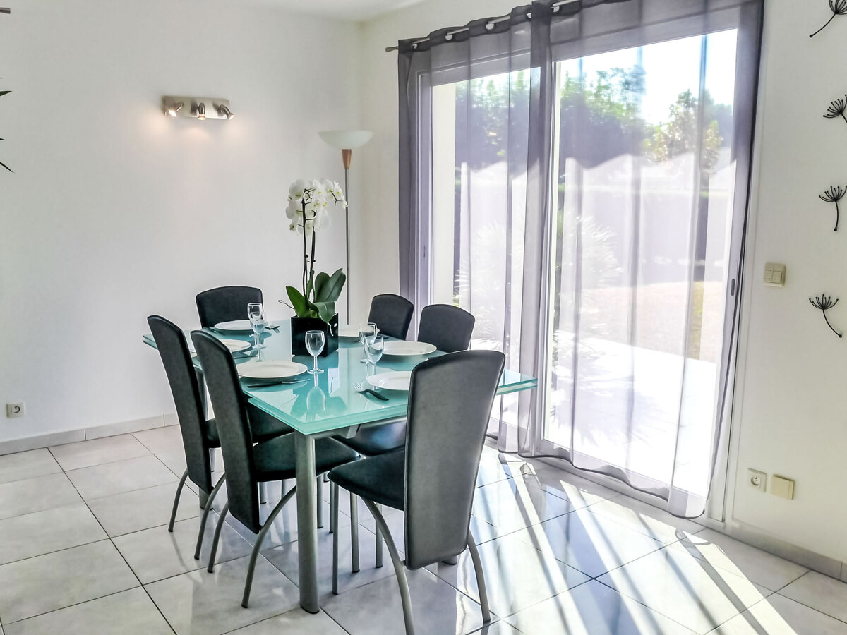 Aménagement confortable et agréable: séjour/salle à manger avec baie vitrée avec TV (écran plat), DVD.