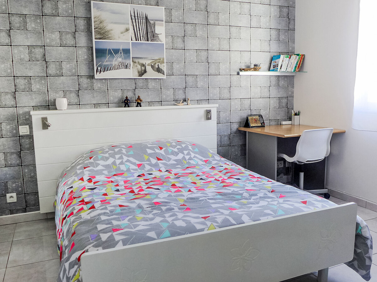 1 chambre avec 1 grand-lit (1 x 140 cm, longueur 190 cm).