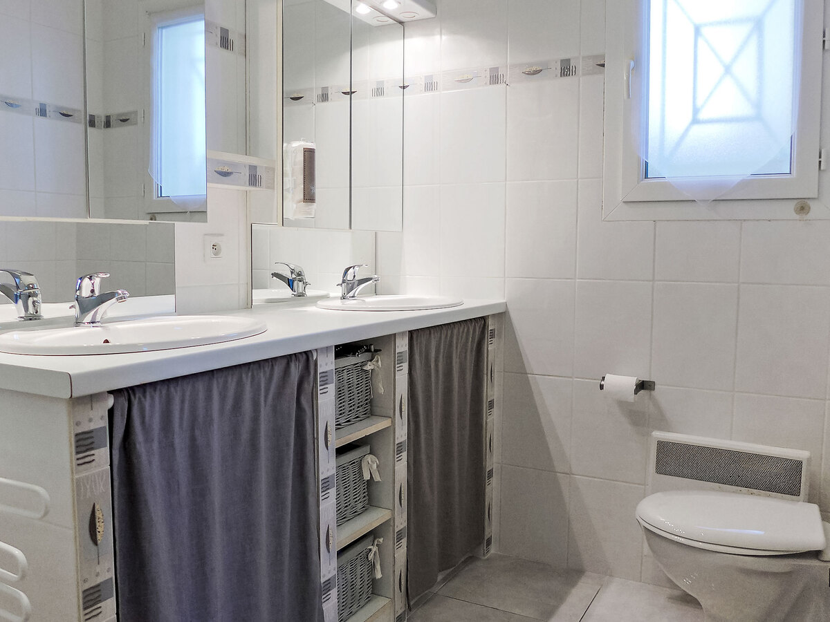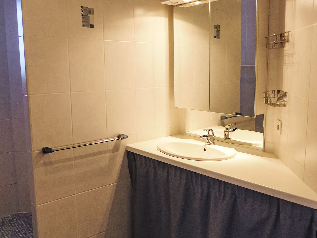 1 chambre avec Dressing avec 1 grand-lit (1 x 140 cm, longueur 190 cm), douche/WC et double vasque.