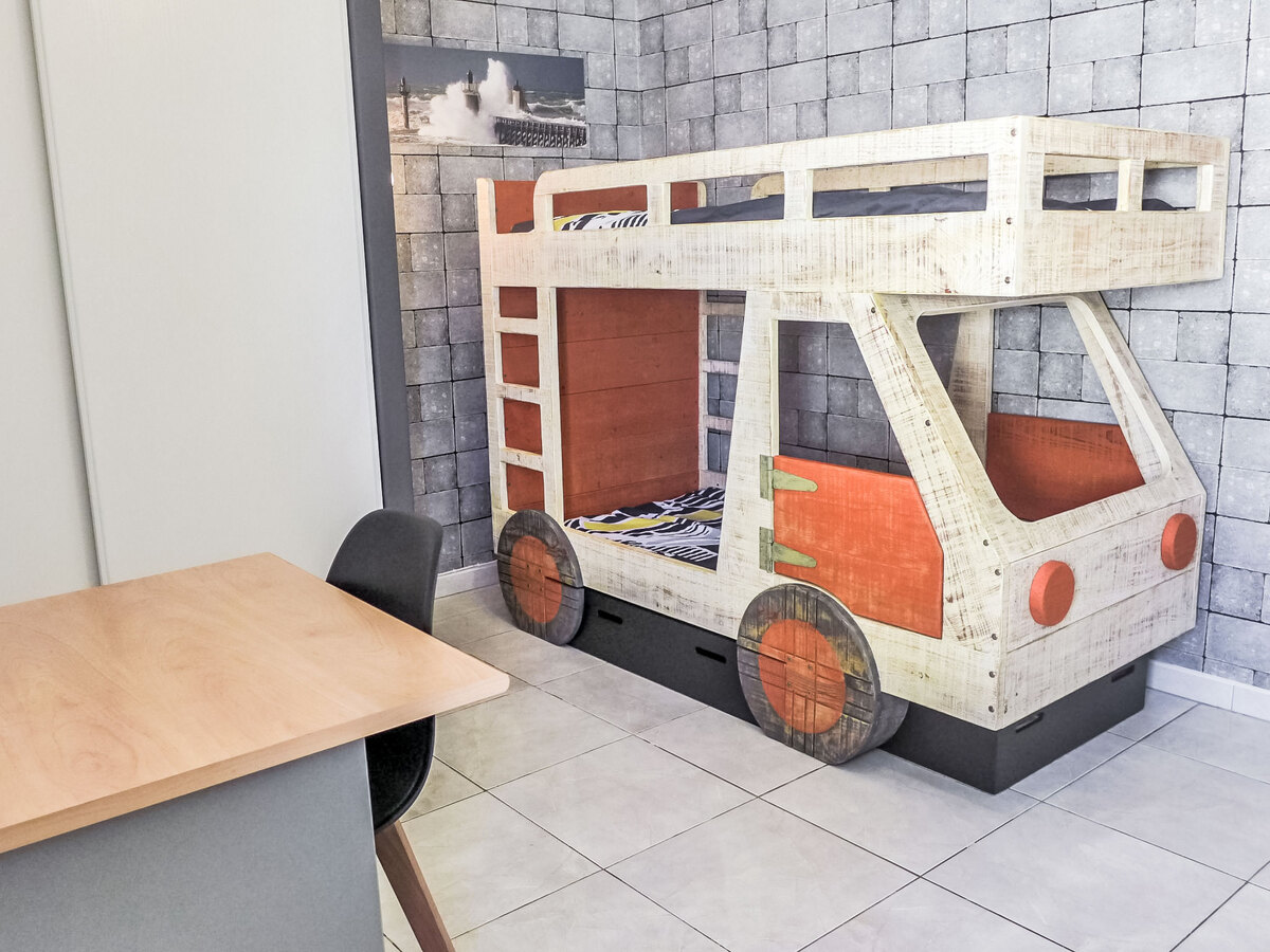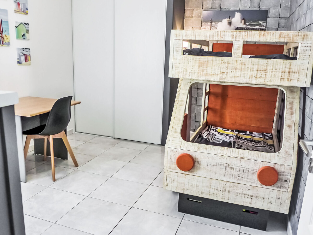 1 chambre avec 1 x 2 lits superposés (90 cm, longueur 190 cm).