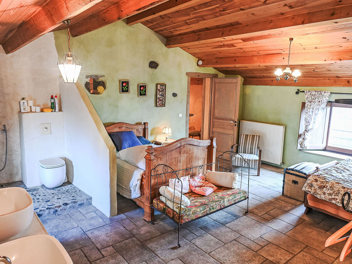 À l’extérieur, la demeure dispose d’un terrain non clos à usage privé de 300m² (une prairie).