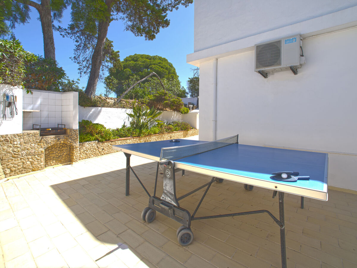 Les locataires disposeront à l’extérieur de cette propriété de trois terrasses privées, dont l’une se localise sur le toit. Le jardin est meublé. Les vacanciers auront aussi à leur disposition une table ping-pong. Ils pourront utiliser un terrain de tennis commun.