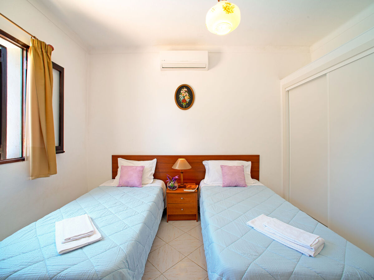 Cet hébergement de vacances typique de la région est composé de 4 pièces. Elle comprend trois chambres climatisées, dont deux sont dotées de 2 lits simples et la dernière donnant sur la terrasse est équipée d’un grand lit. Cette charmante villa a une salle de séjour équipée d’une cheminée ouverte. Cette pièce donne sur la terrasse. Le coin-repas y est aménagé. La cuisine, séparée du séjour, dispose d’une table à manger pour 4 personnes. Elle est équipée de 4 feux, d’un four, de micro-ondes, d’un lave-vaisselle, d’un réfrigérateur, d’un petit congélateur, d’une cafetière électrique, d’une bouilloire électrique et d’un grille-pain.