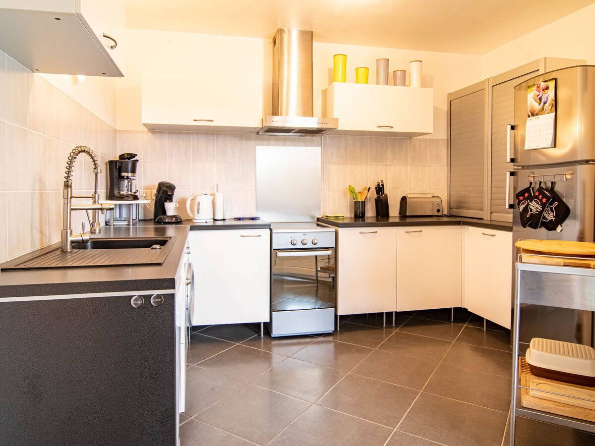 Cuisine (four, lave-vaisselle, 4 plaques à induction, grille-pain, bouilloire électrique, micro-ondes, congélateur, cafetière électrique).