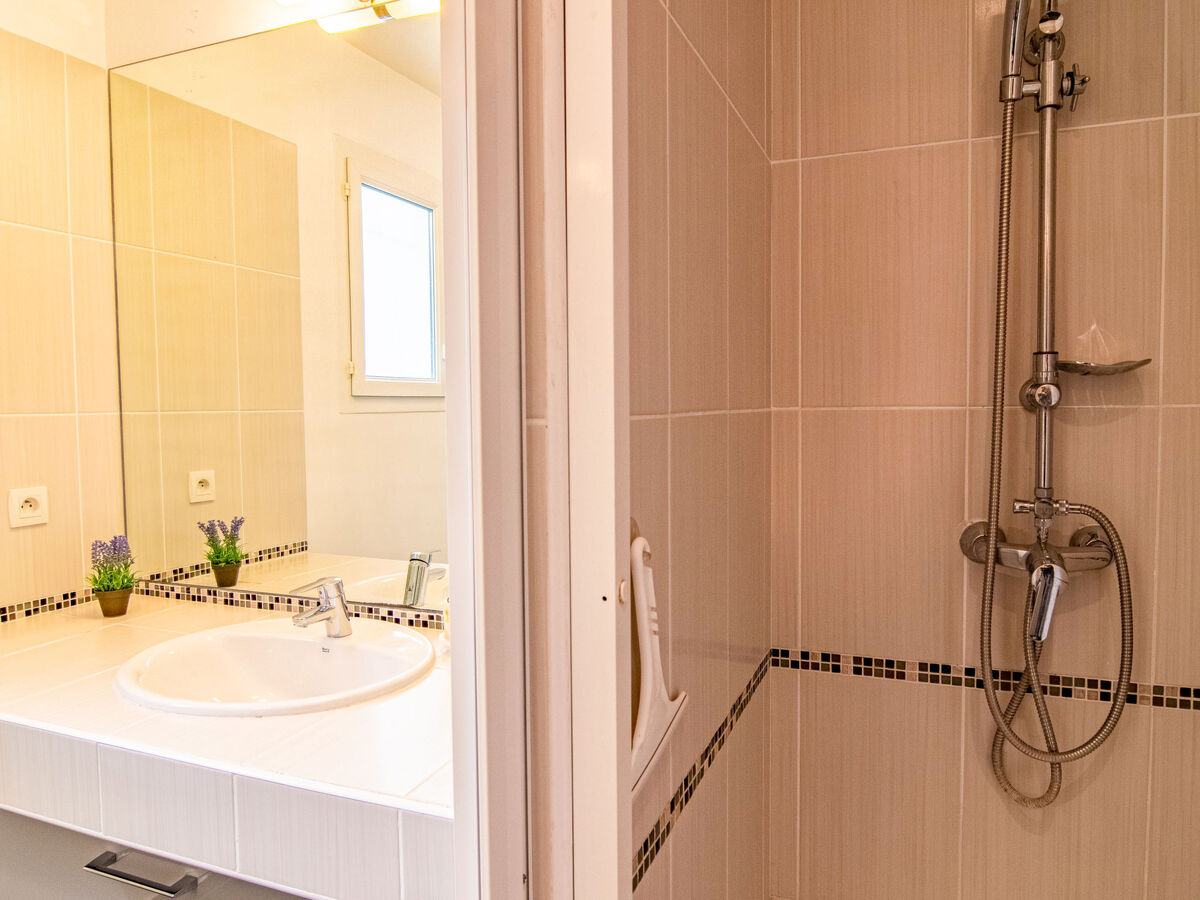 1 chambre avec 1 grand-lit (160 cm), douche.