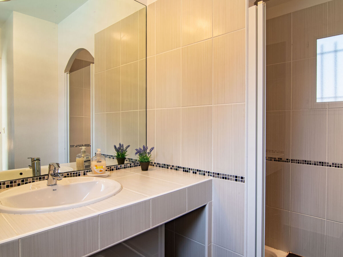 Douche extérieure, terrain de pétanque, terrasse, place de parking (pour 3 voitures) sur le terrain.