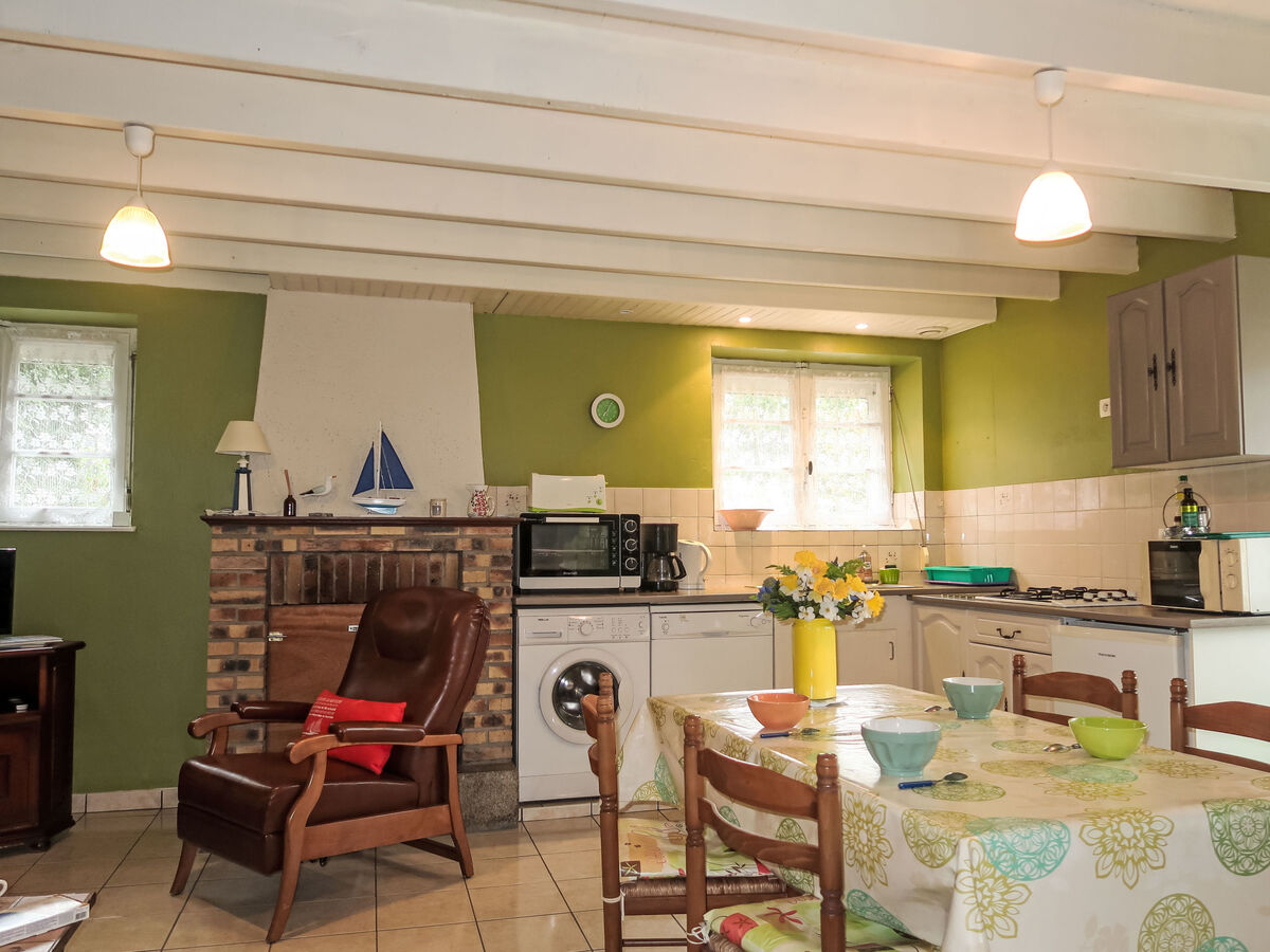 Aménagement fonctionnel et agréable: séjour/salle à manger avec cheminée (uniquement à titre de décoration), table pour les repas et TV (satellite) (écran plat), DVD.