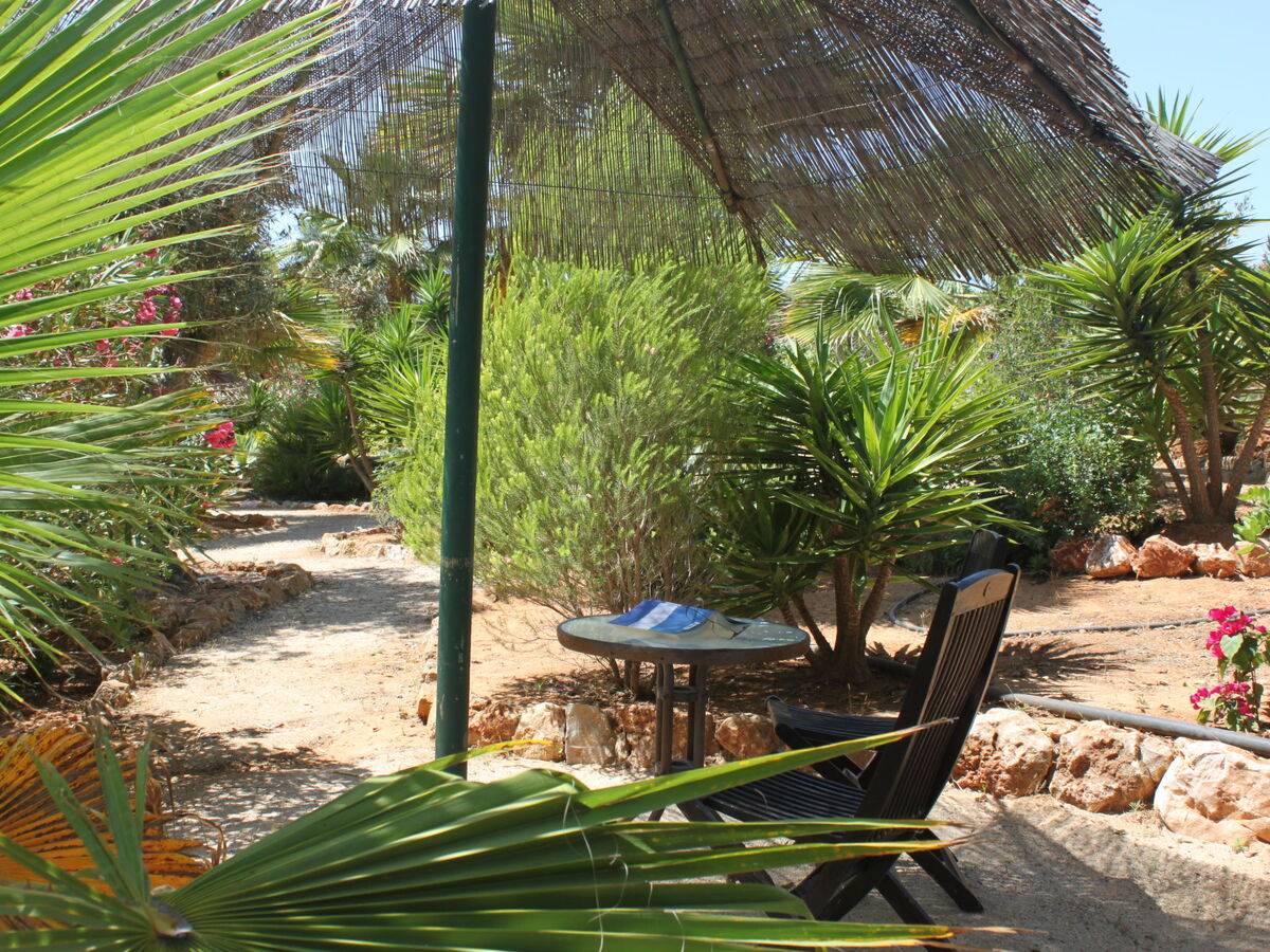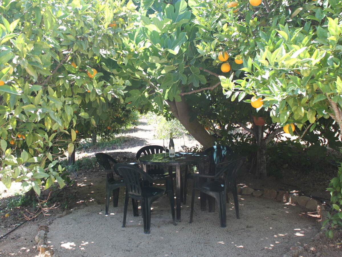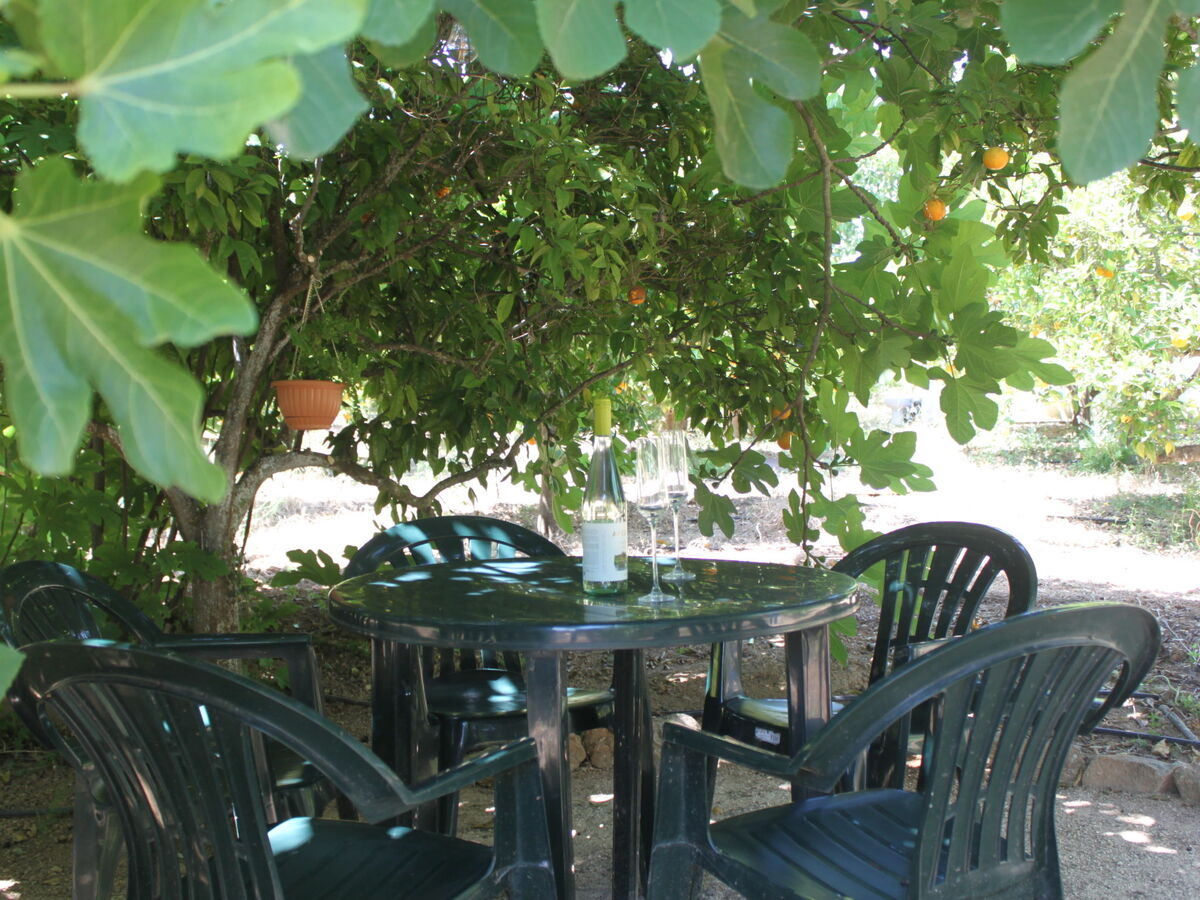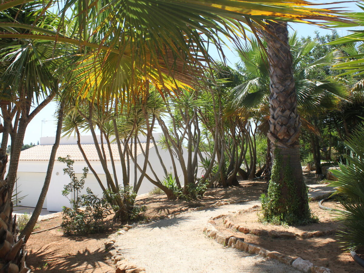 À l’extérieur, une terrasse et un balcon de 35 m² accompagnés de meubles de jardin et d’un barbecue bâti peuvent être utilisés. La piscine dispose de chaises longues, d’un parasol et d’une douche extérieurs. Un terrain d’environ 1,2 ha, laissé à l’état naturel, offre un jardin composé d’arbres fruitiers, d’oliviers et de palmiers.