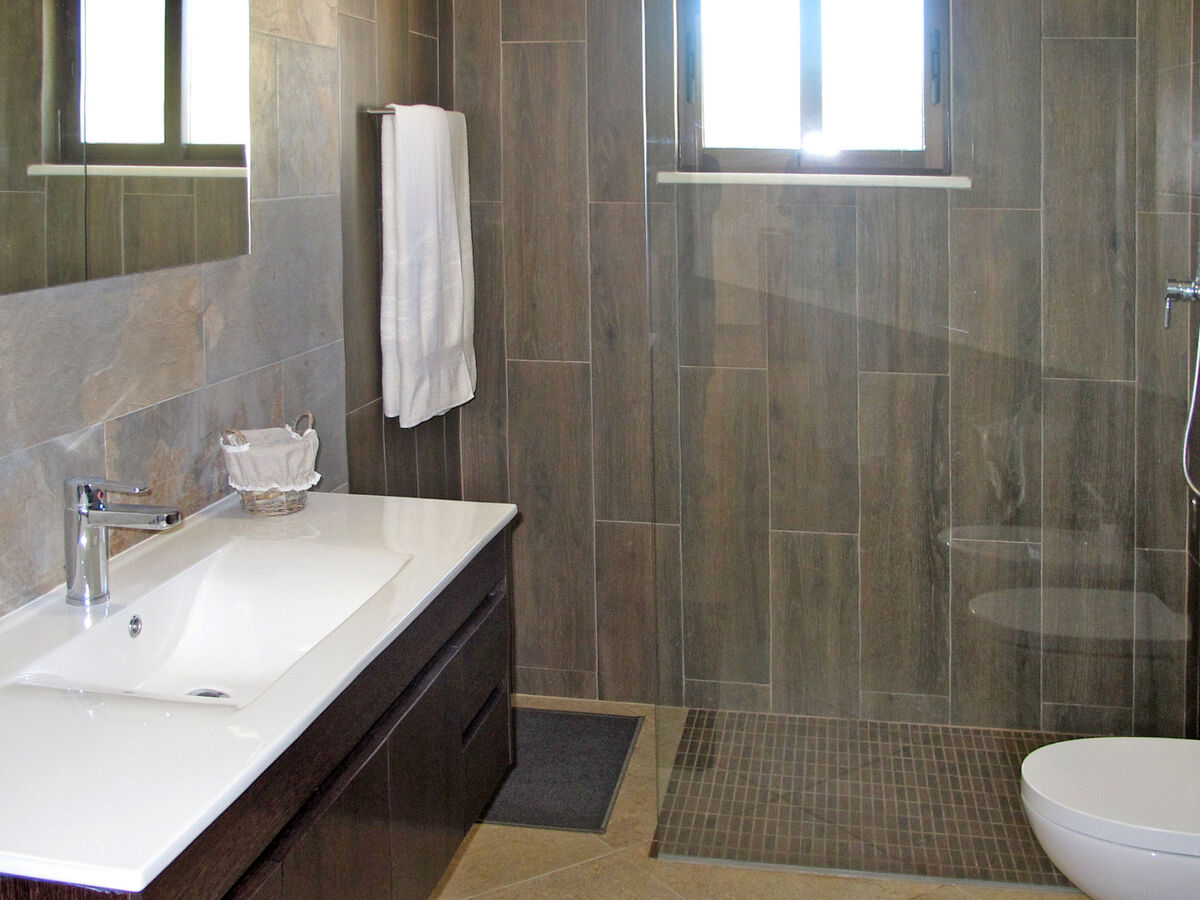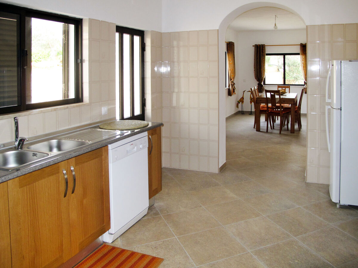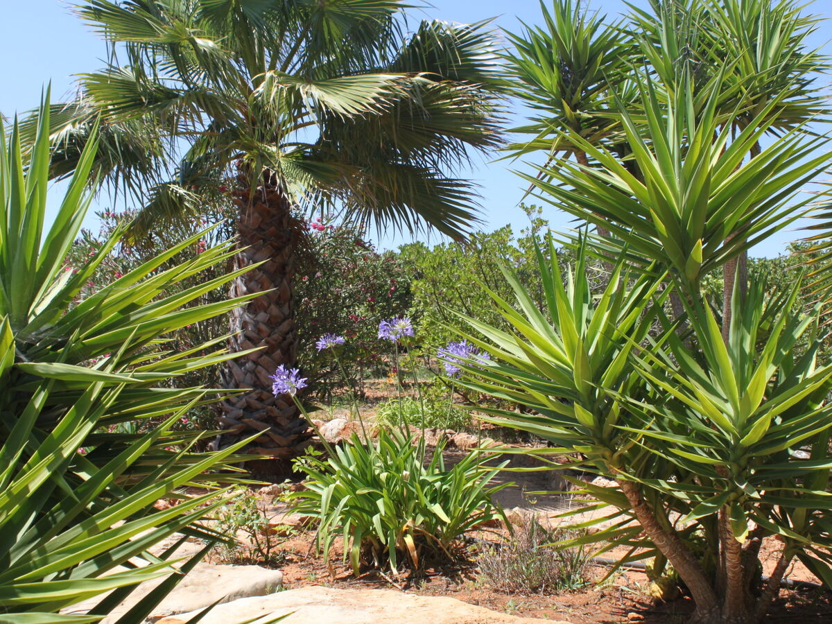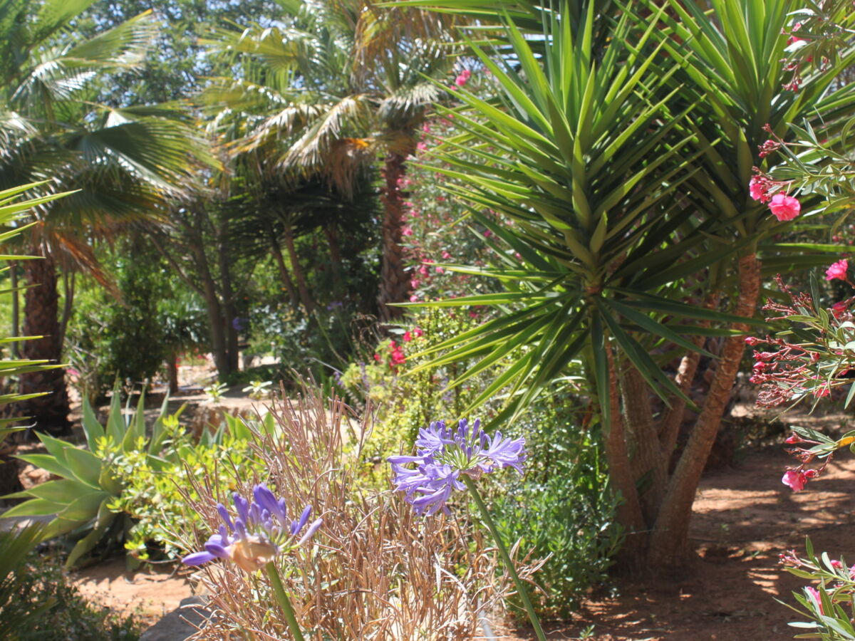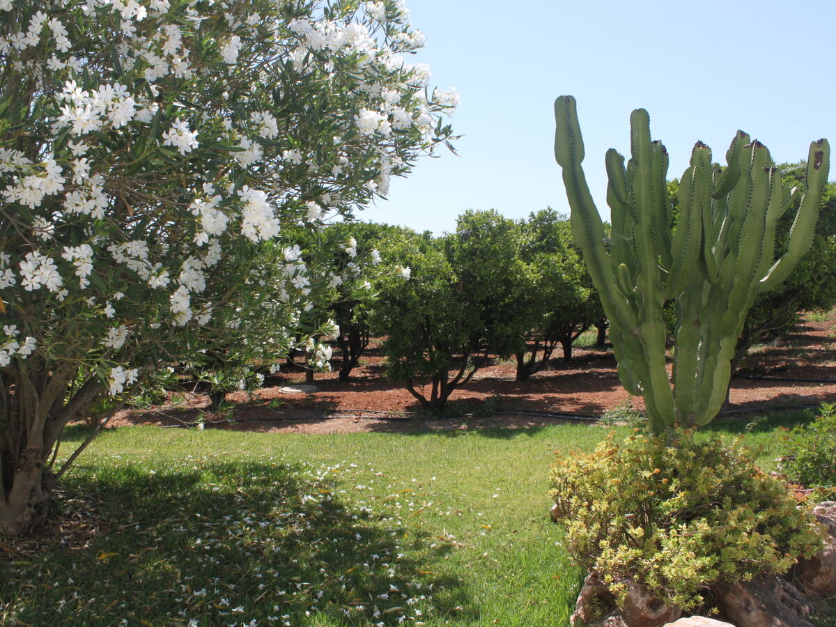 À l’extérieur, une terrasse et un balcon de 35 m² accompagnés de meubles de jardin et d’un barbecue bâti peuvent être utilisés. La piscine dispose de chaises longues, d’un parasol et d’une douche extérieurs. Un terrain d’environ 1,2 ha, laissé à l’état naturel, offre un jardin composé d’arbres fruitiers, d’oliviers et de palmiers.