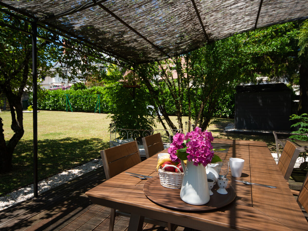 A usage privé: terrain 200 m2, beau jardin 400 m2 (clôturé) avec pelouse et arbres.