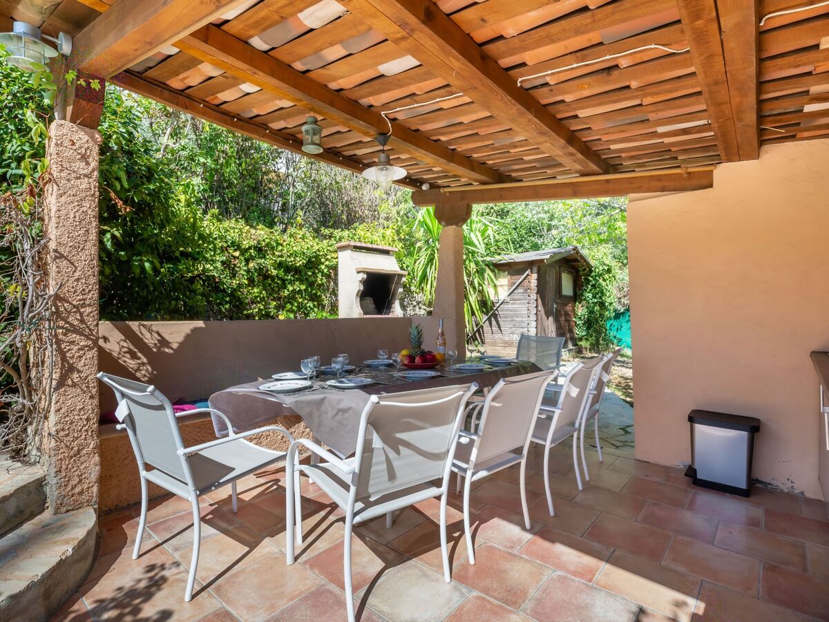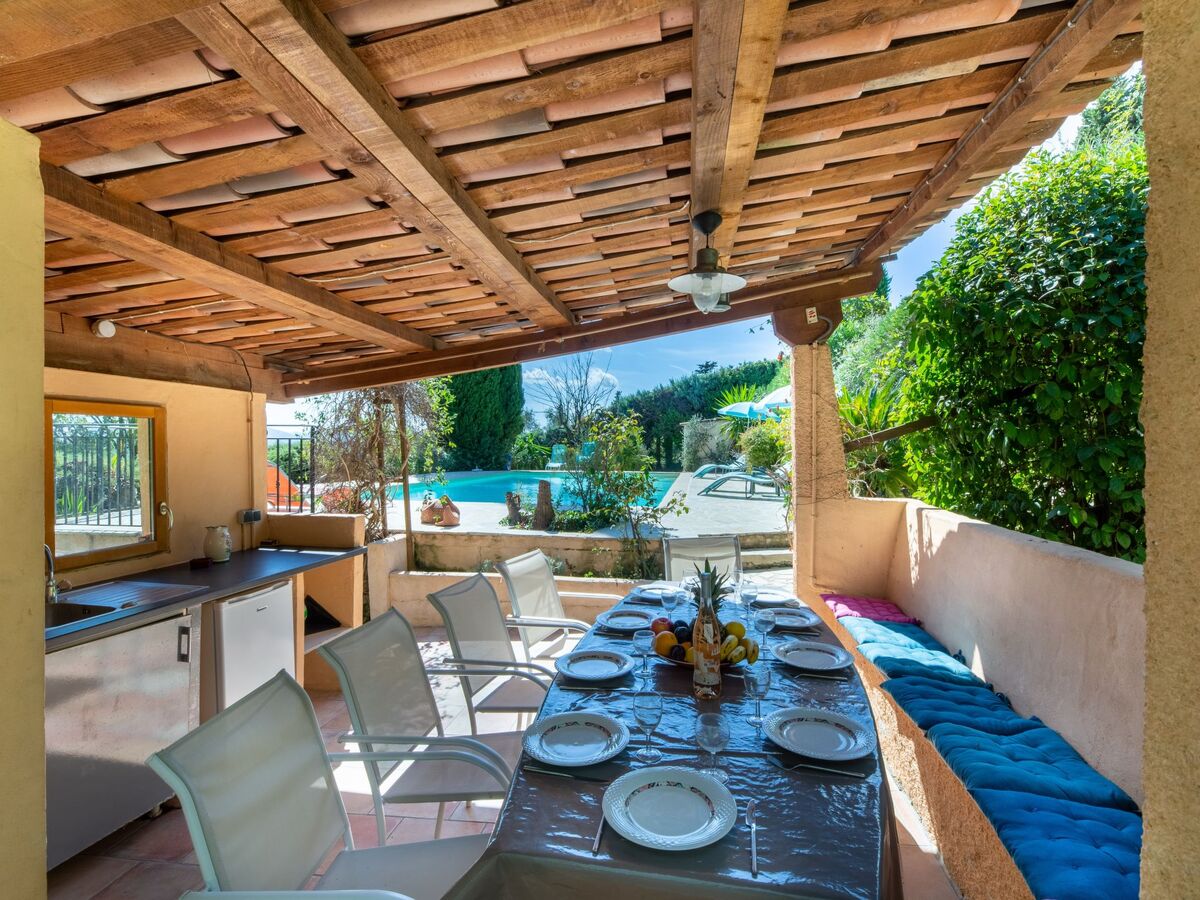 Douche extérieure, pool house avec réfrigérateur et plaque de cuisson, terrain de pétanque, terrasse, meubles de jardin, barbecue.
