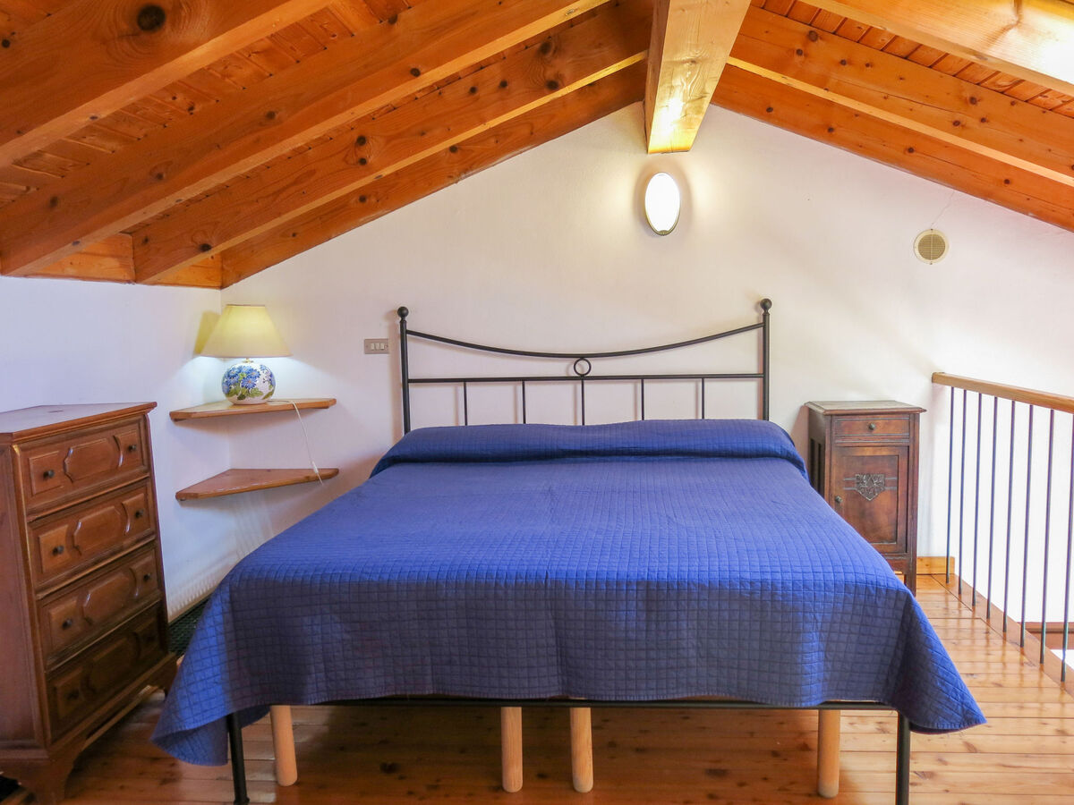 Galerie mansardée, ouverte avec fenêtre sous le toit avec 1 lit double.