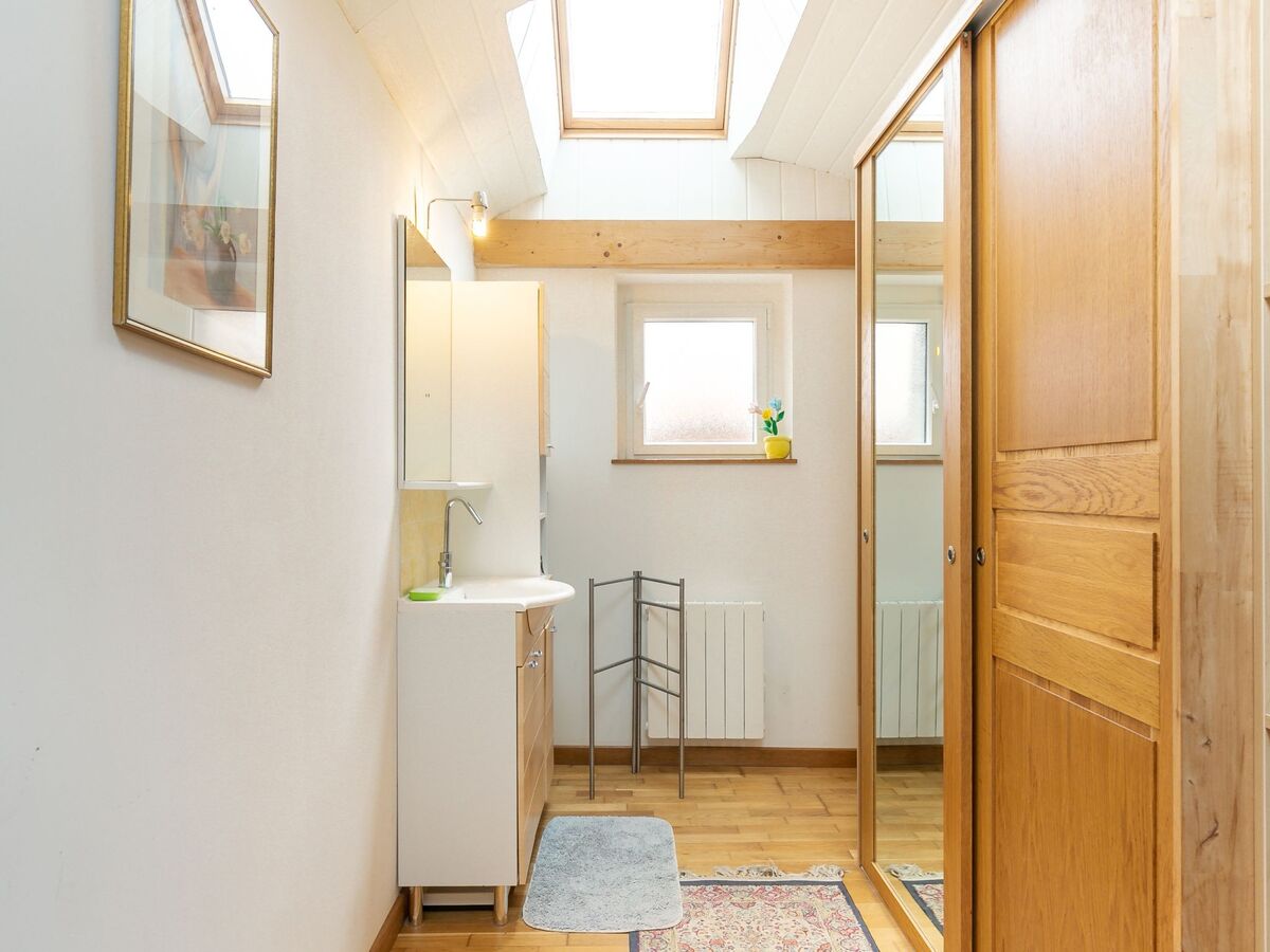 1 chambre avec 1 grand-lit (160 cm, longueur 190 cm), lavabo.
