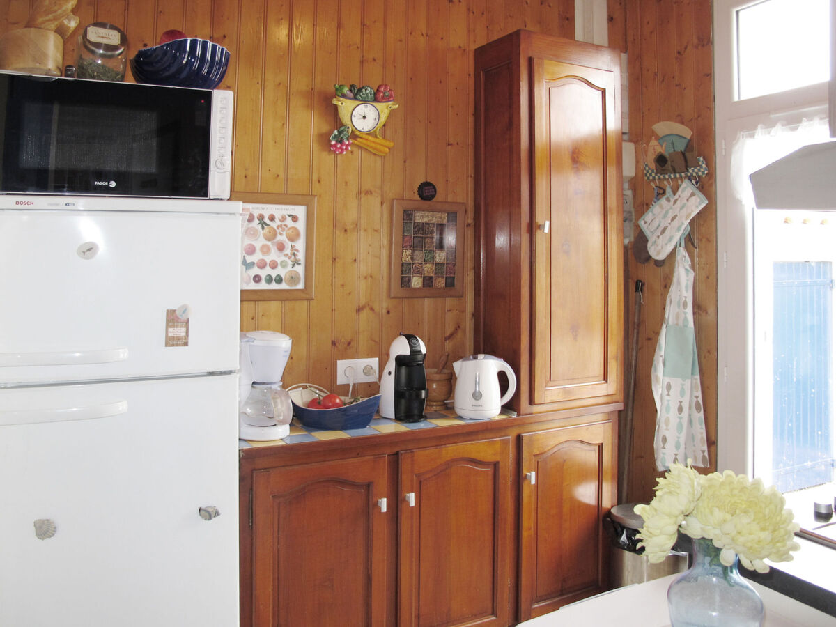 Petite cuisine (2 plaques de cuisson, four, bouilloire électrique, micro-ondes, congélateur, cafetière électrique).
