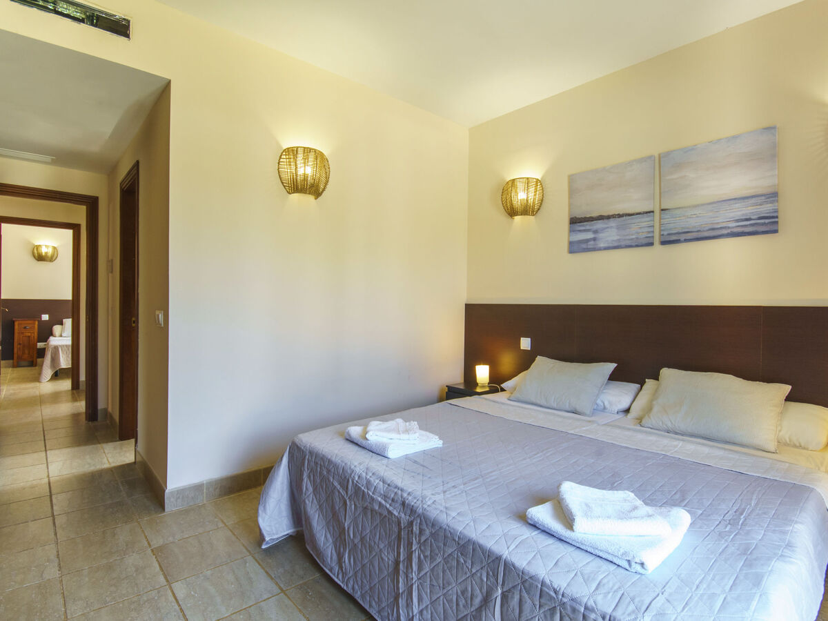 Cette propriété à louer d’une superficie de 100 m² dispose d’une salle de séjour avec un coin salon et un accès direct sur la terrasse. Le coin-repas se trouve dans cette même pièce. La cuisine, s’ouvrant sur le séjour, est équipée de 4 plaques vitro-céramiques, un micro-ondes, un four, un lave-vaisselle, une petite armoire-congélateur, un réfrigérateur, un grille-pain et une cafetière électrique. Dans les restes des pièces, les vacanciers trouveront deux chambres. Ces dernières sont meublées et disposent de deux lits simples. L’une donne sur la terrasse tandis que l’autre sur le jardin. Deux salles de bains leurs sont proposés dont l’une, comportant une baignoire et un WC est directement accessible à la chambre accédant à la terrasse.