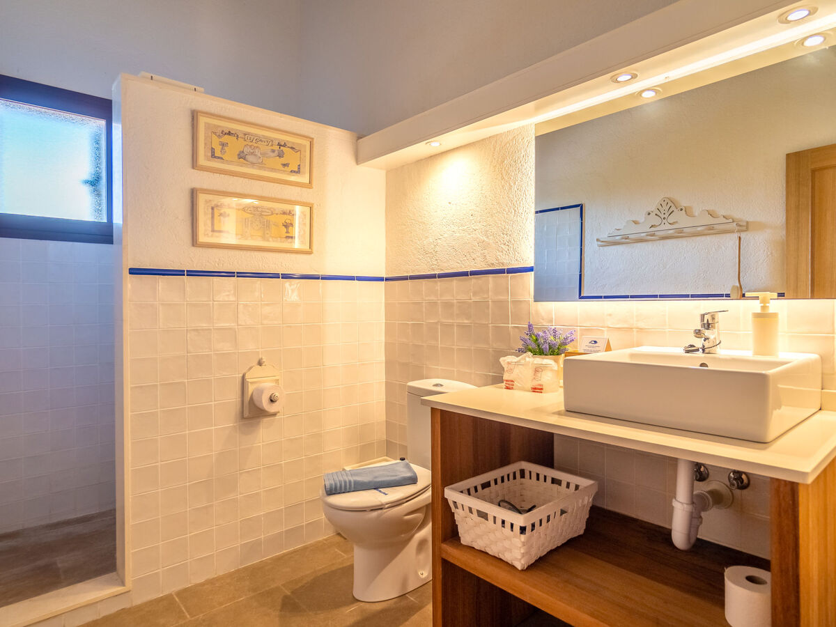 La maison compte 3 pièces avec deux chambres dont l’une est dotée d’un grand lit et d’un accès à une salle de bains privée comportant une douche et un WC. L’autre, quant à elle, comprend deux lits simples. Une salle d’eau partagée comprenant une douche et un WC est aussi disponible. Dans le séjour a été aménagé un coin-repas. Il dispose d’une sortie menant sur la terrasse et d’une cuisine ouverte. Cette dernière est préalablement équipée de 3 feux, un micro-ondes, une rôtissoire, un lave-vaisselle, un réfrigérateur, un petit congélateur, une cafetière électrique, une bouilloire électrique et un grille-pain. Quelques équipements additionnels sont aussi fournis incluant une télévision satellite, une connexion WIFI et des radiateurs électriques.