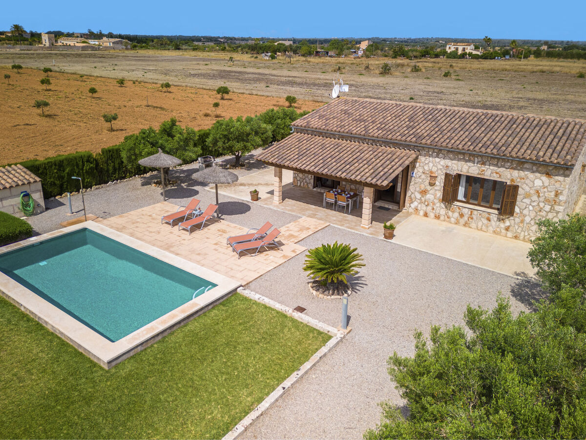 Cette maison de campagne est située à 4.8 km du centre-ville de Sa Rapita dans lequel se trouvent les commerces les plus proches. Les villes de Campos et de Palma sont situées respectivement à 8 km et 46 km. La plage de sable est à 3.5 km tandis que l’Aéroport de Palma est à 39 km.