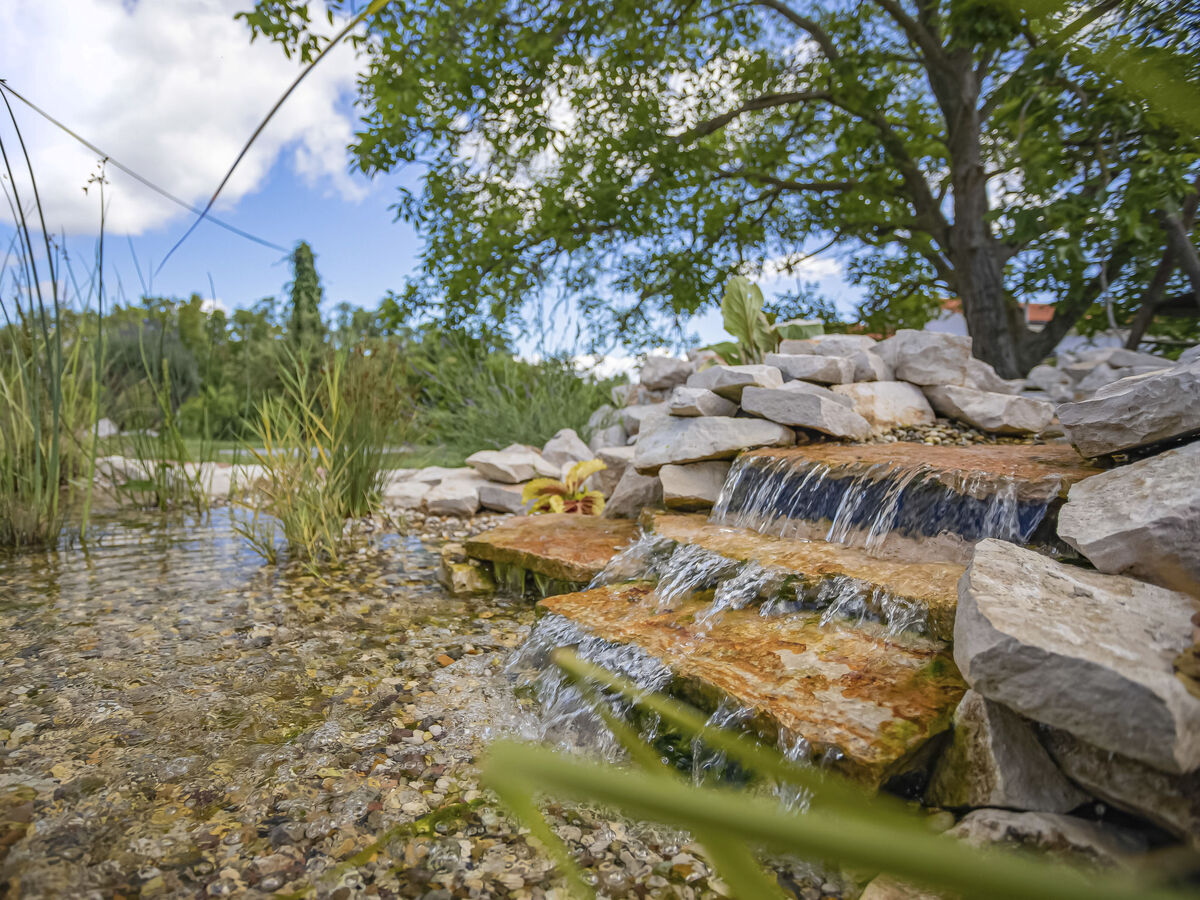 A usage privé: terrain 1'300 m2 avec pelouse et arbres, piscine (40 m2, profondeur 135 - 200 cm, disponibilité saisonnière: 01.Mai.