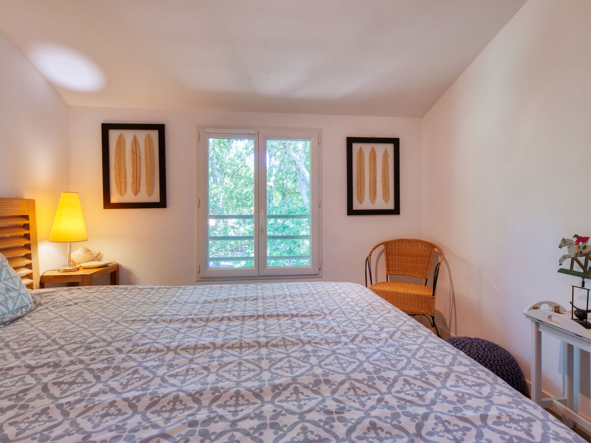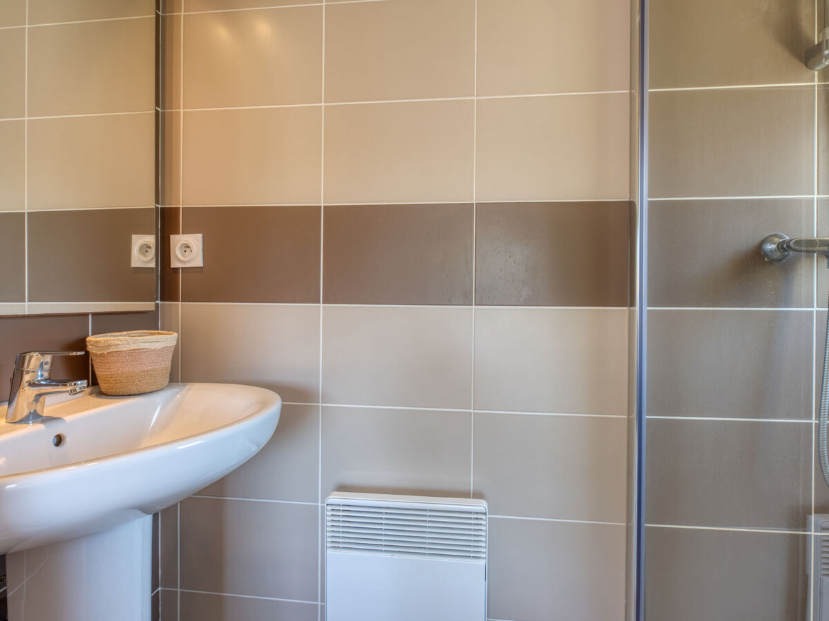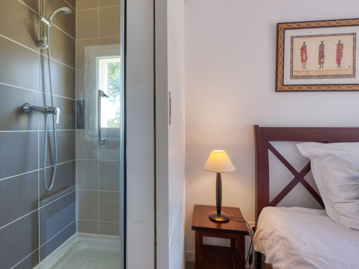 1 chambre, mansardée avec 1 grand-lit (160 cm, longueur 200 cm), douche.