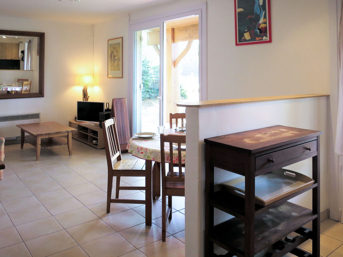 Aménagement fonctionnel et plaisant: séjour/salle à manger avec table pour les repas et TV (satellite) (écran plat), chaîne stéréo et DVD.