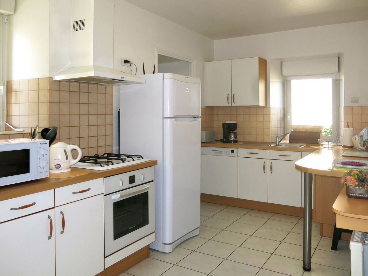 Cuisine ouverte (1 plaque de cuisson, four, lave-vaisselle, 3 feux, grille-pain, bouilloire électrique, micro-ondes, congélateur, cafetière électrique).