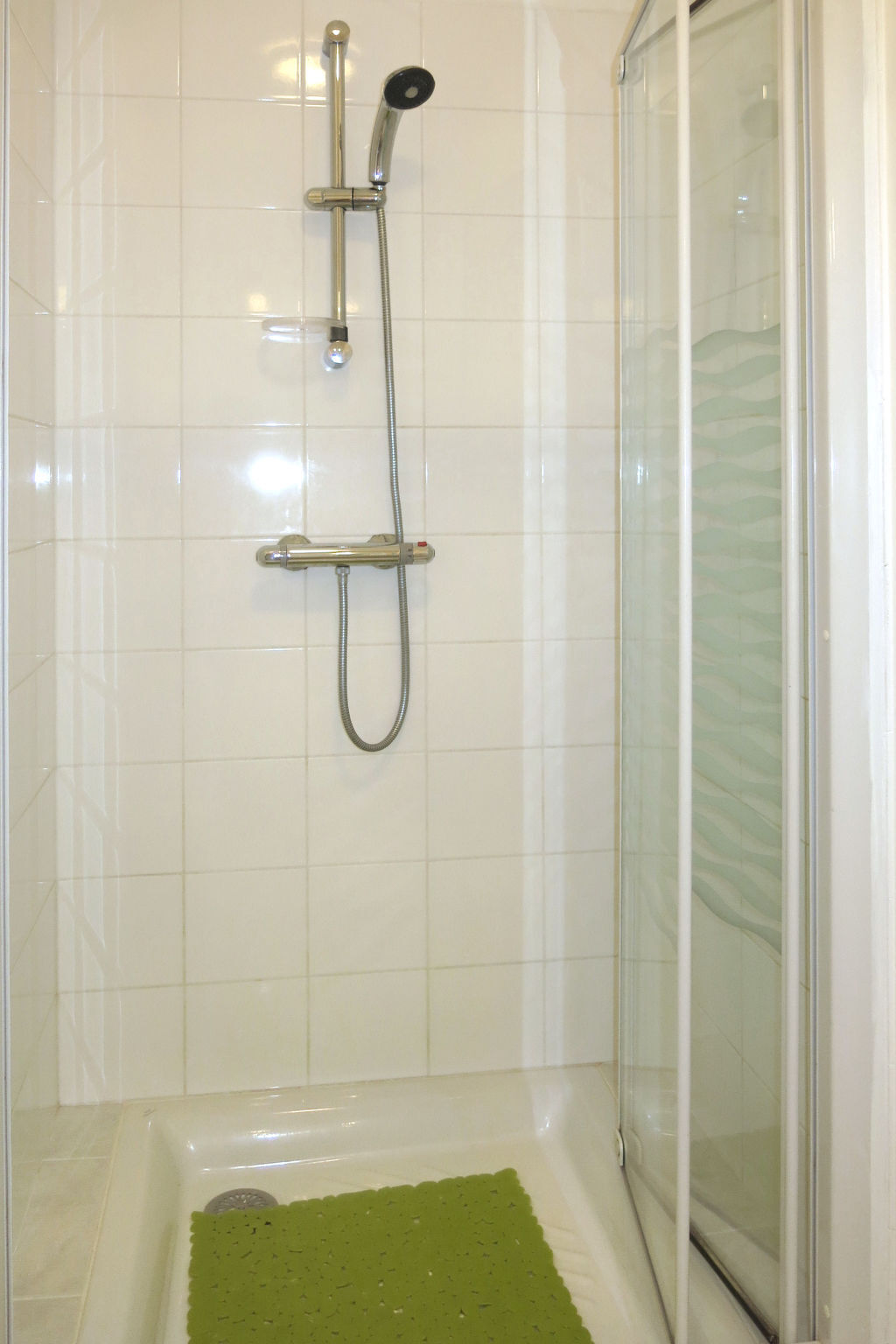 1 chambre avec 1 grand-lit (140 cm, longueur 190 cm), douche.