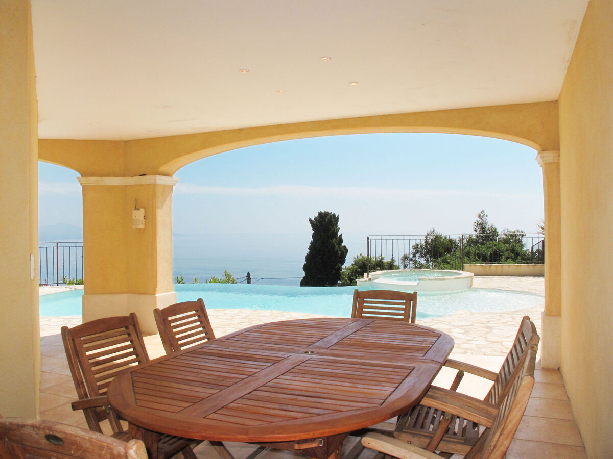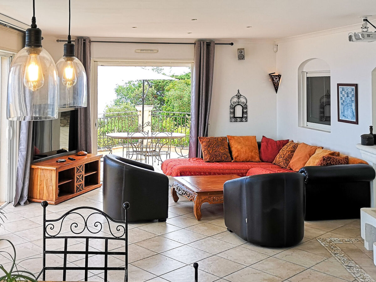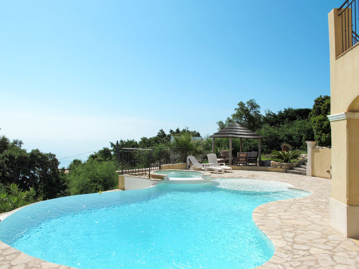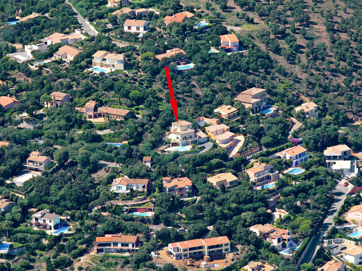 À 3 km du centre de Les Issambres, à 13 km du centre de Sainte Maxime, à 27 km du centre de Saint Tropez, sur un versant, quartier résidentiel, à 1.2 km de la mer.