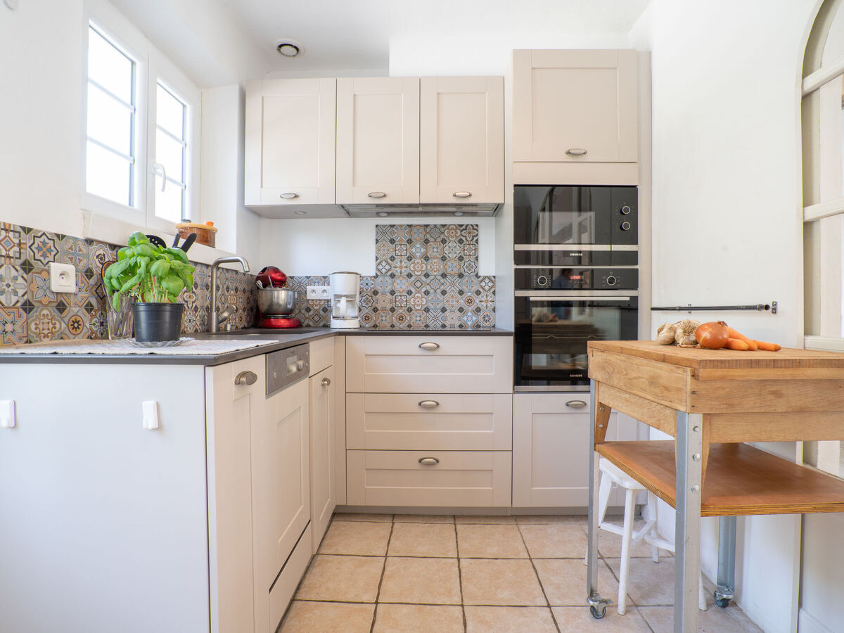 Cuisine ouverte (four, lave-vaisselle, 3 plaques vitrocéramiques, 1 feux, grille-pain, bouilloire électrique, micro-ondes, congélateur, cafetière électrique).