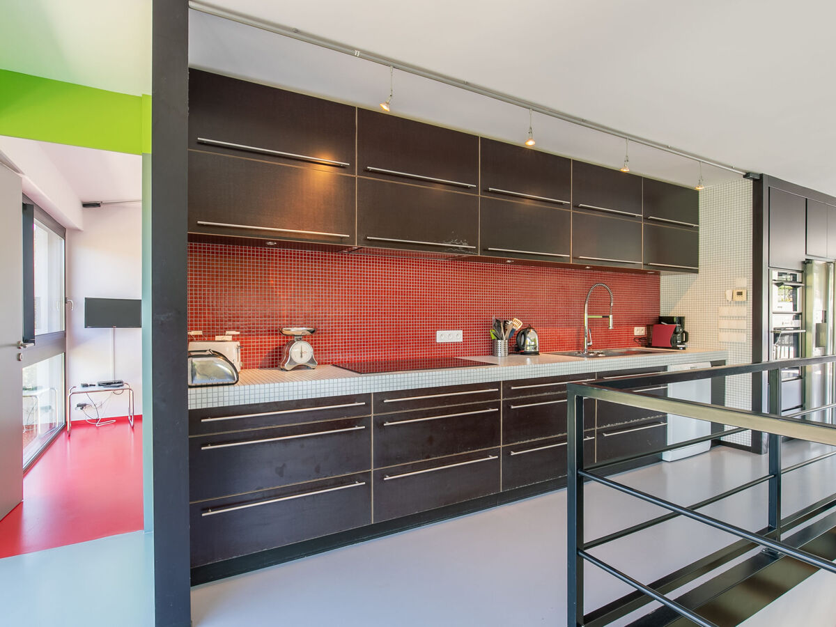 Cuisine ouverte (four, lave-vaisselle, 3 plaques à induction, grille-pain, bouilloire électrique, micro-ondes, cafetière électrique).