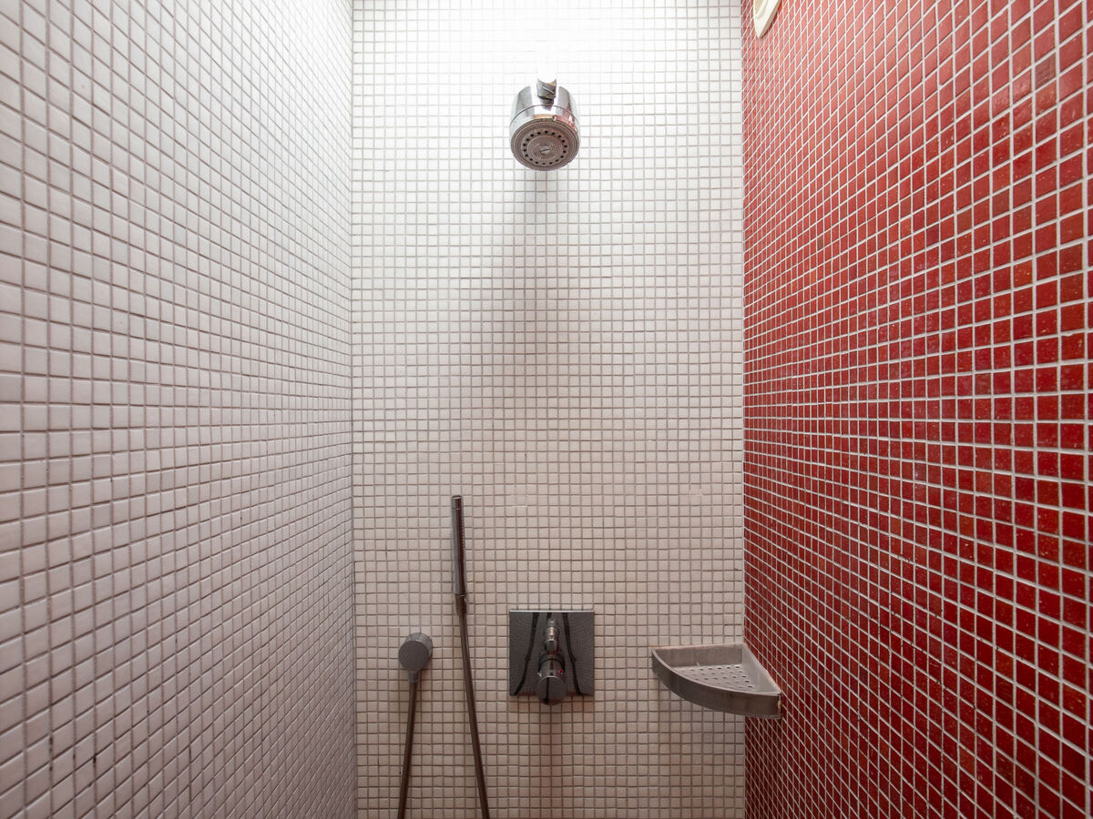 1 chambre avec 1 grand-lit (140 cm), douche.