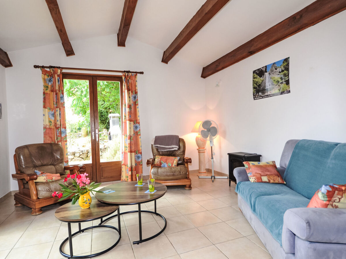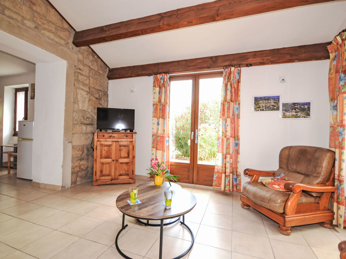 Aménagement fonctionnel et plaisant: séjour avec TV (écran plat), lecteur CD, chaîne stéréo et ventilateur.