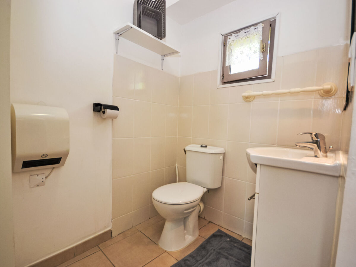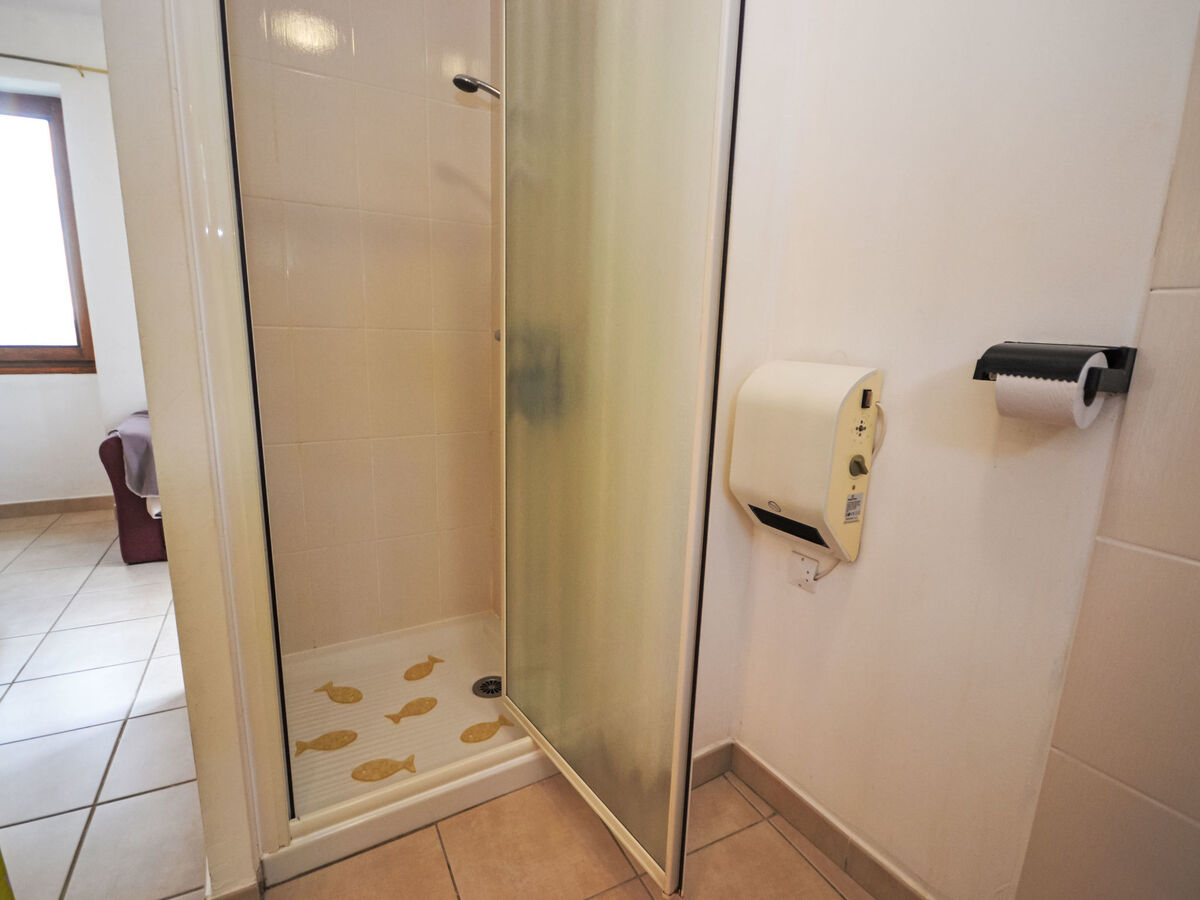 À l'étage supérieur: 1 chambre, ouverte avec 1 grand-lit (140 cm, longueur 190 cm), douche/WC.