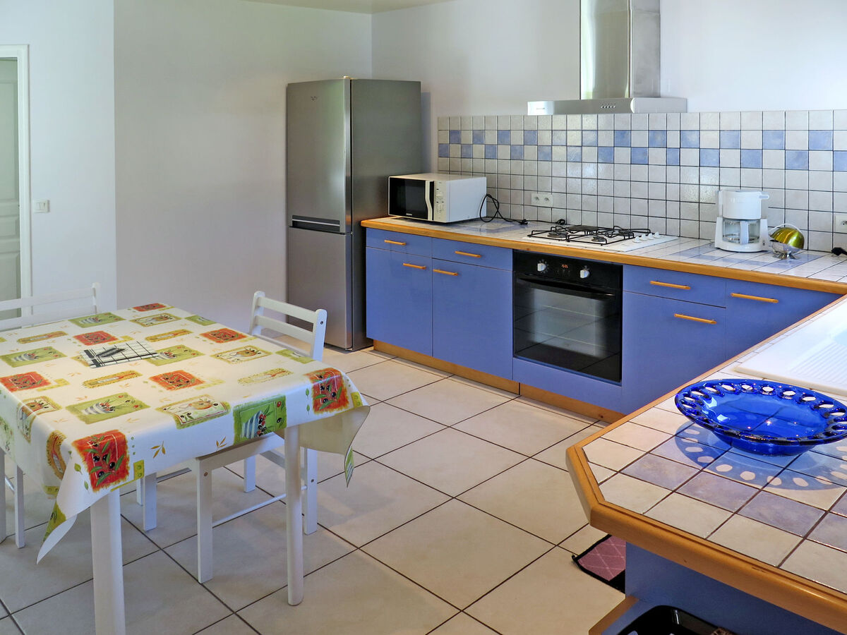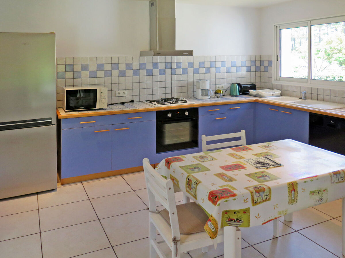 Cuisine ouverte (3 plaques de cuisson, four, lave-vaisselle, 1 feux, grille-pain, bouilloire électrique, micro-ondes, cafetière électrique) avec table pour les repas.