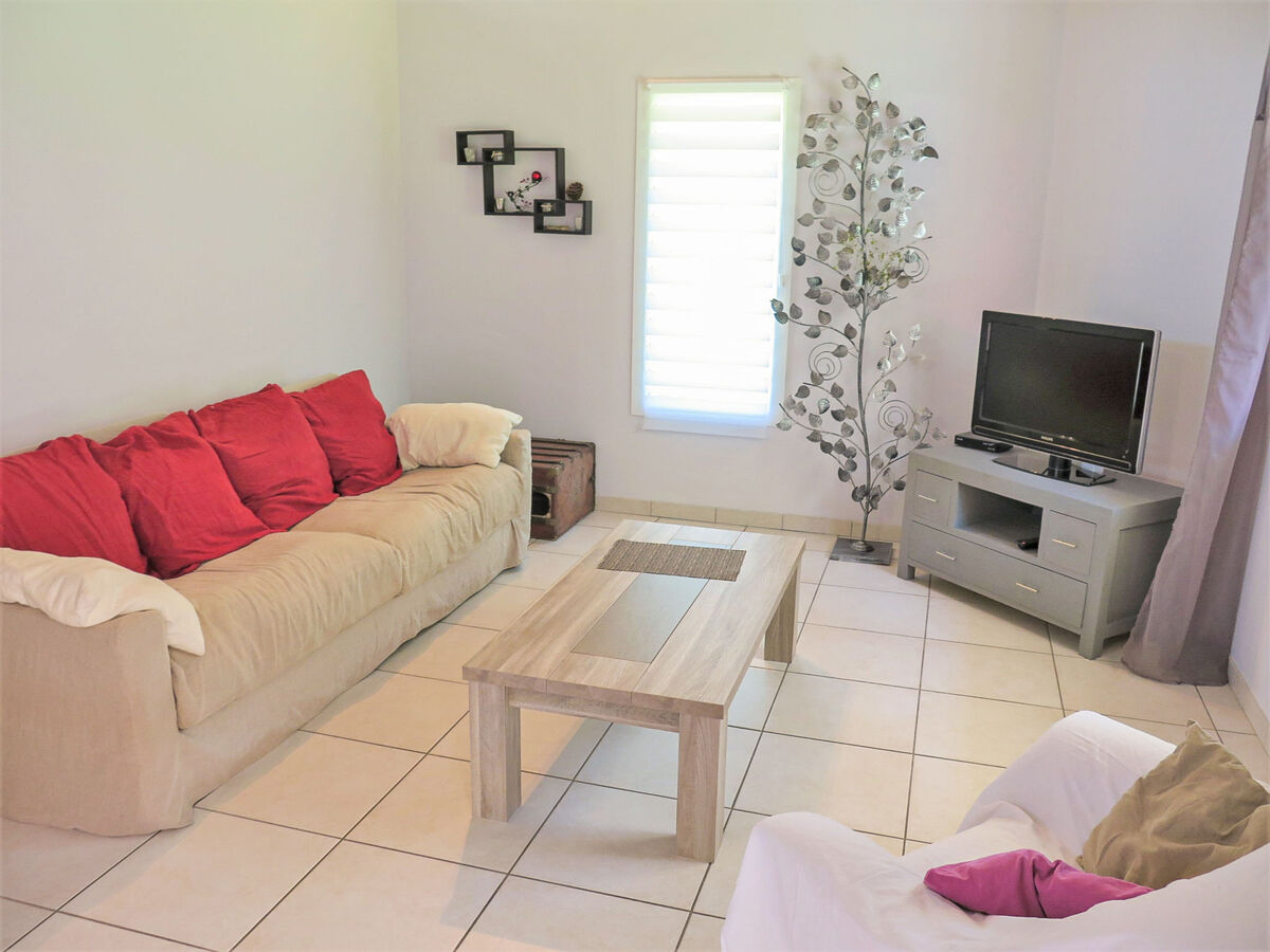 Clair, aménagement plaisant: séjour/salle à manger avec table pour les repas et TV (satellite) (écran plat), radio, lecteur CD et DVD.