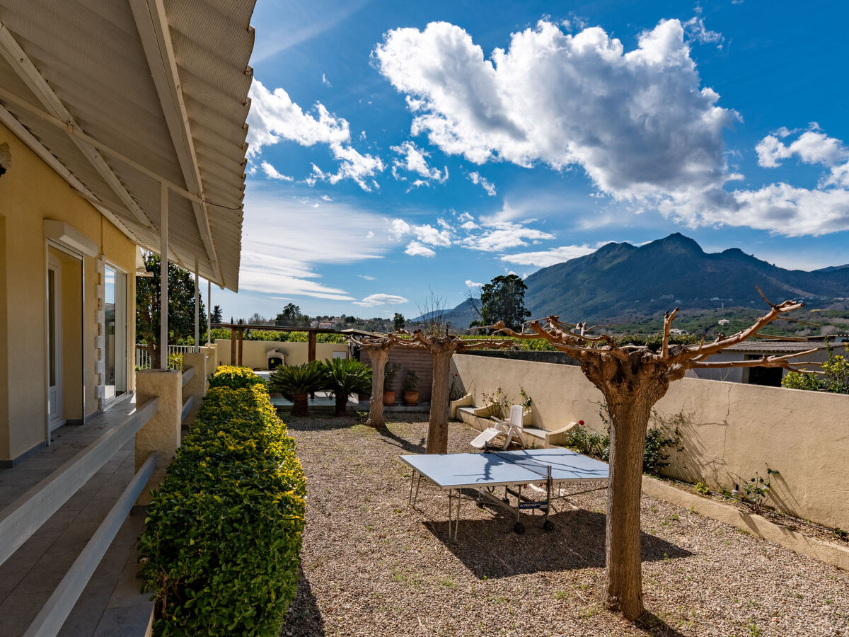La villa « La Cerisaie » est une maison individuelle avec piscine privée destinée à accueillir 8 personnes. Elle se trouve dans un quartier d’habitation à la campagne à 1.6 km du centre de Moriani-Plage.