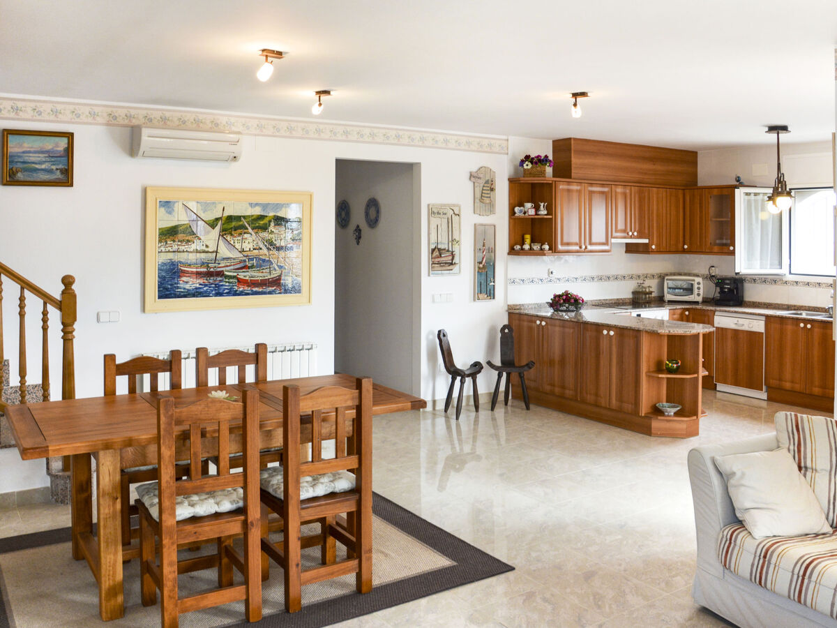 Aménagement plaisant: séjour/salle à manger avec cheminée, table pour les repas, TV (satellite), radio, DVD, chauffage électrique et air-conditionné.