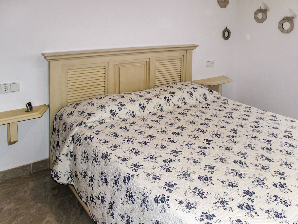 1 chambre avec 1 grand-lit (160 cm, longueur 190 cm), bain/WC et double vasque.