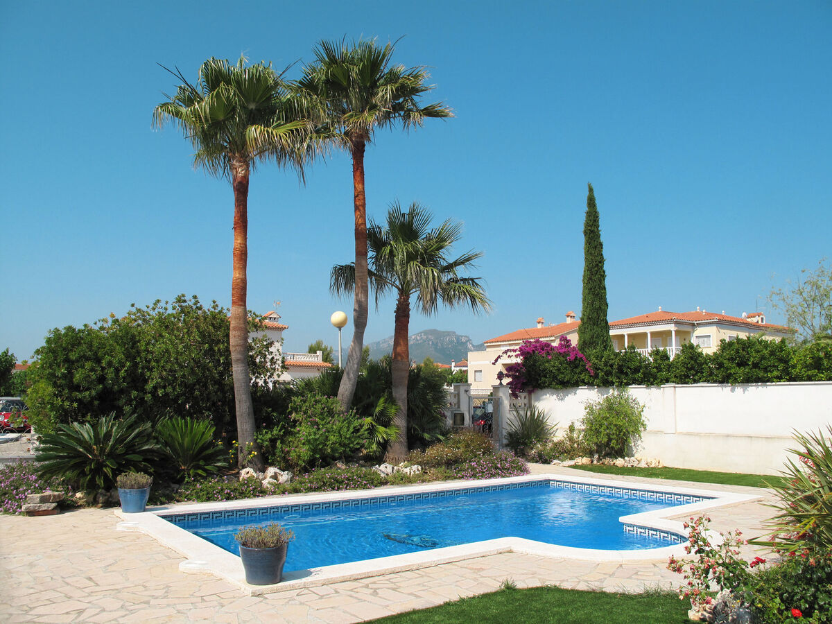 A usage privé: terrain 600 m2 avec plantes et arbres, piscine (8 x 4 m, profondeur 150 cm, disponibilité saisonnière: 01.Jan.