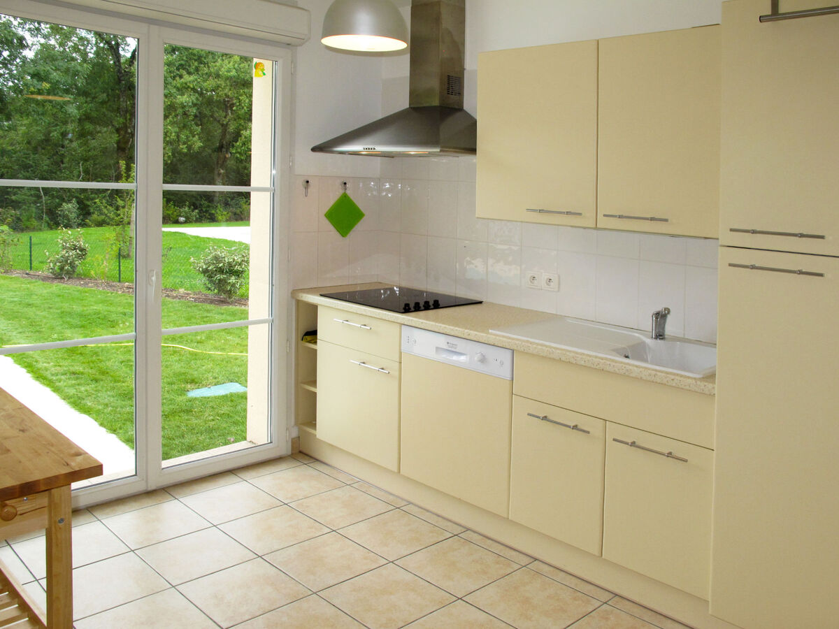 Cuisine ouverte (four, lave-vaisselle, 4 plaques vitrocéramiques, grille-pain, bouilloire électrique, micro-ondes, congélateur, cafetière électrique).
