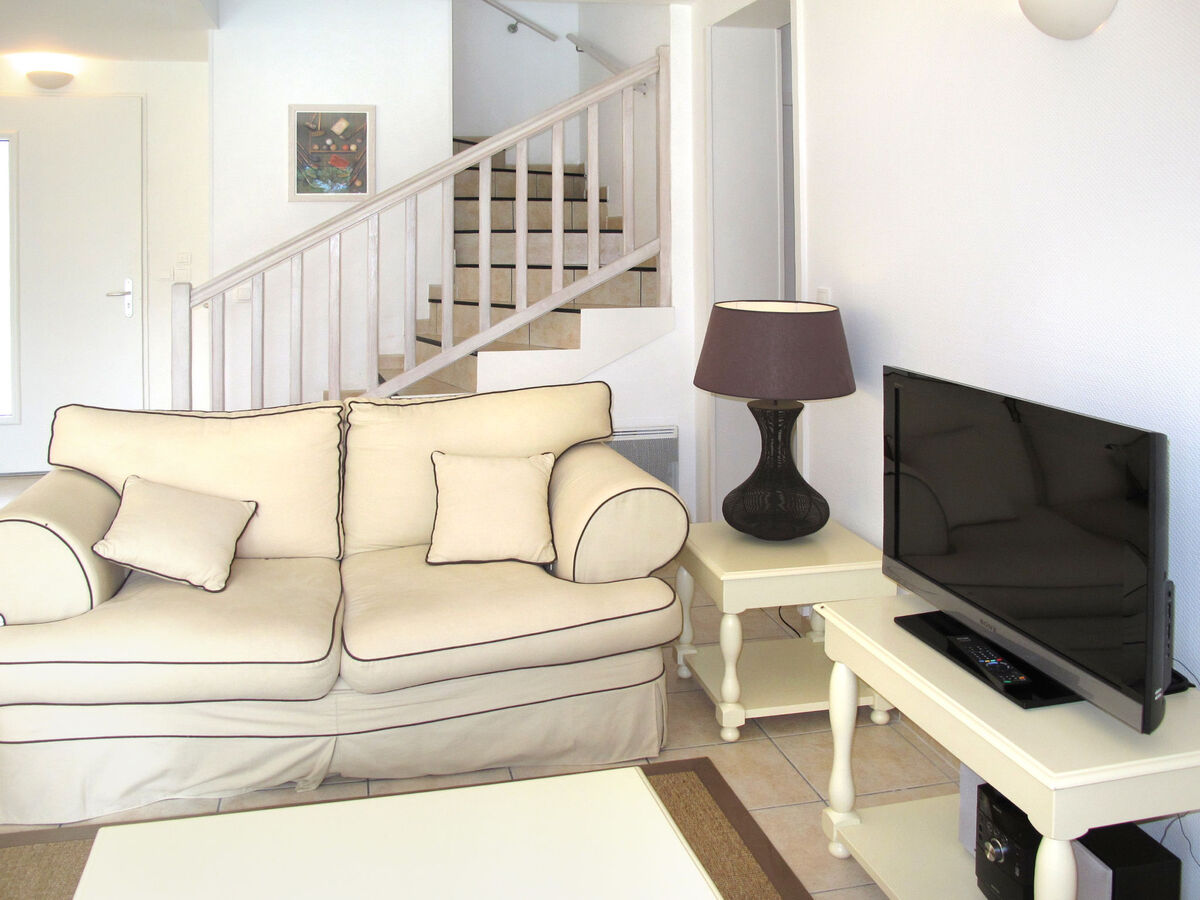 Aménagement agréable et de bon goût: séjour/chambre à coucher avec 1 divan-lit double et cheminée (uniquement à titre de décoration), table pour les repas et TV (satellite).