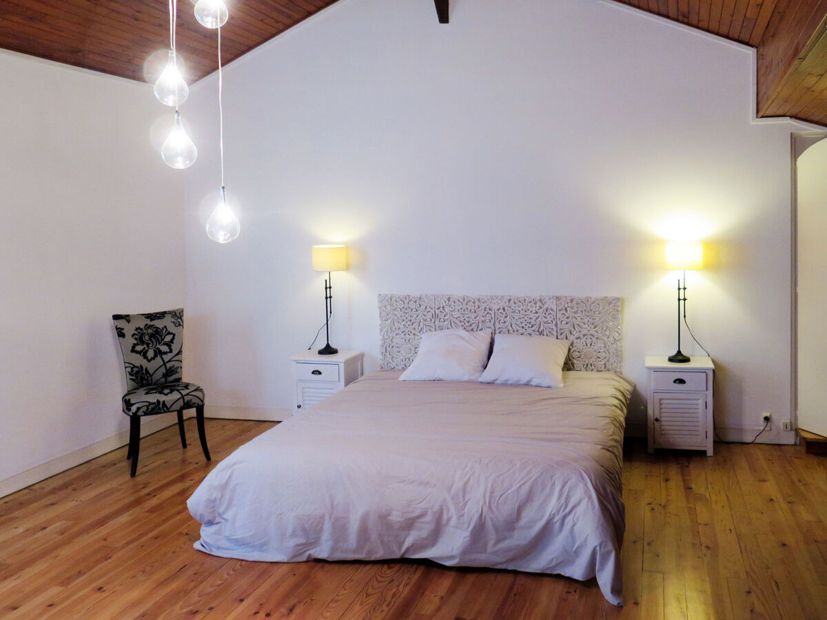 1 chambre avec 1 grand-lit (160 cm, longueur 200 cm).