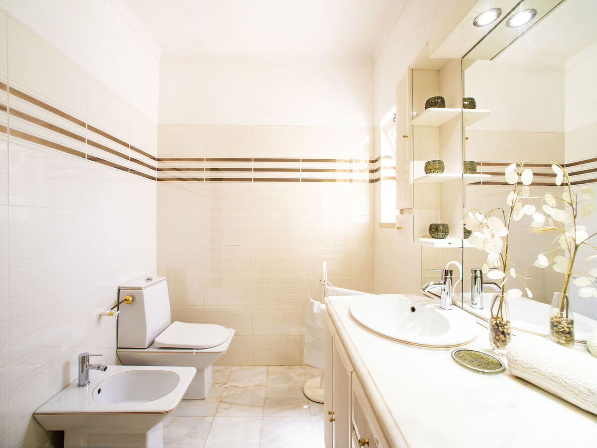 La maison offre un intérieur plaisant, clair, bien aménagé, et accueillant. Trois chambres y sont disponibles. La première chambre est équipée de deux lits simples. Les deux autres chambres comportent chacune 1 grand lit de 1,60 m de large et sont climatisées. L’une de ces deux chambres donne au jardin et dispose d’un accès direct à sa propre salle d’eau. La maison possède un autre sanitaire commun aux autres locataires. Dans la salle de séjour donnant sur la terrasse, une cheminée ouverte est présente. Un coin salon et un coin-repas y sont aussi aménagés. Quant à la cuisine, elle est équipée de 4 feux, d’un four, d’un micro-ondes, d’un lave-vaisselle, d’un réfrigérateur, d’un petit congélateur, d’une cafetière électrique, d’une bouilloire électrique, et d’un grille-pain. Elle dispose aussi d’un autre coin-repas prévu pour 5 personnes.