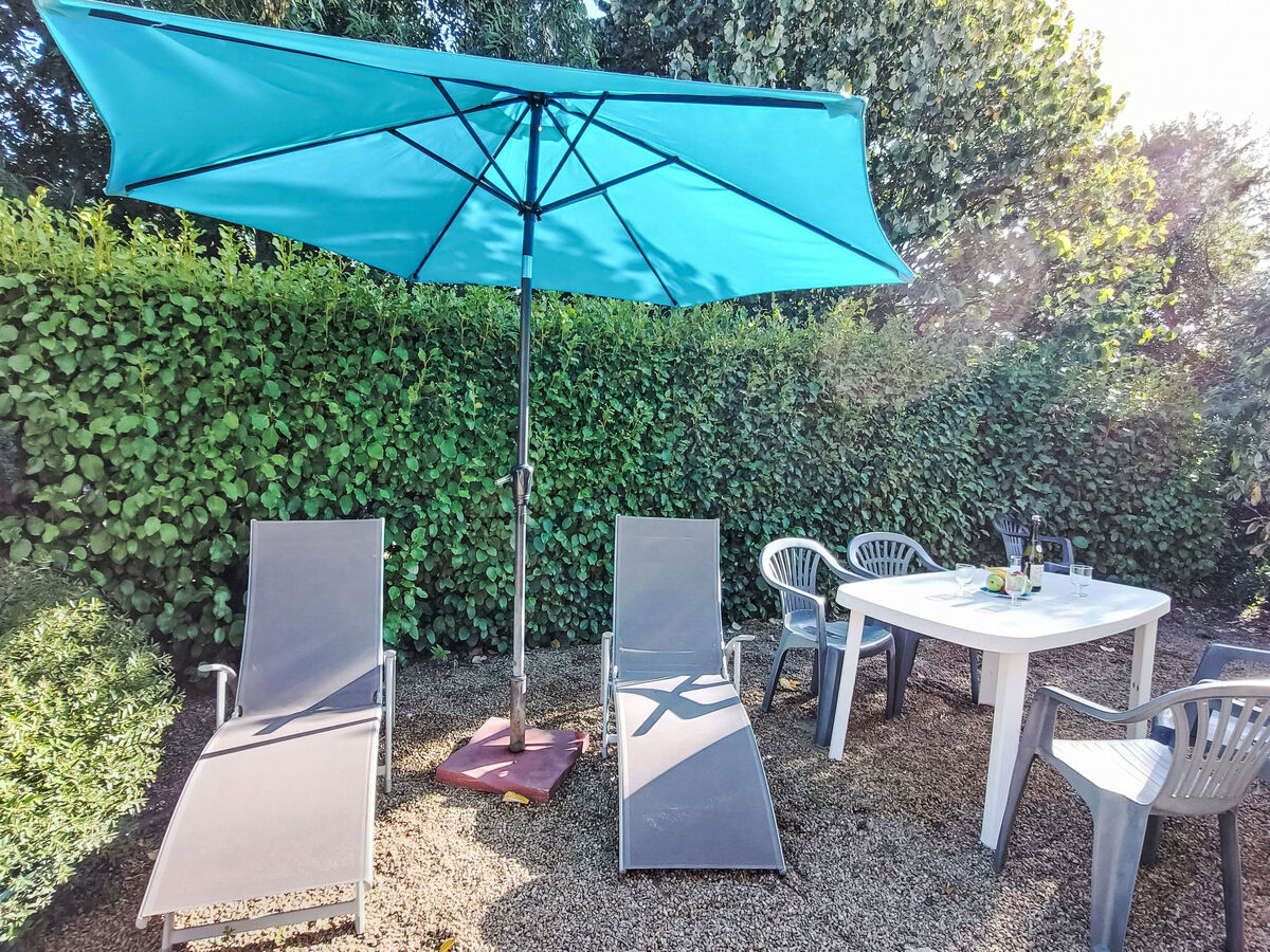 Meubles de terrasse, barbecue (portable), chaises longues (4), réduit.