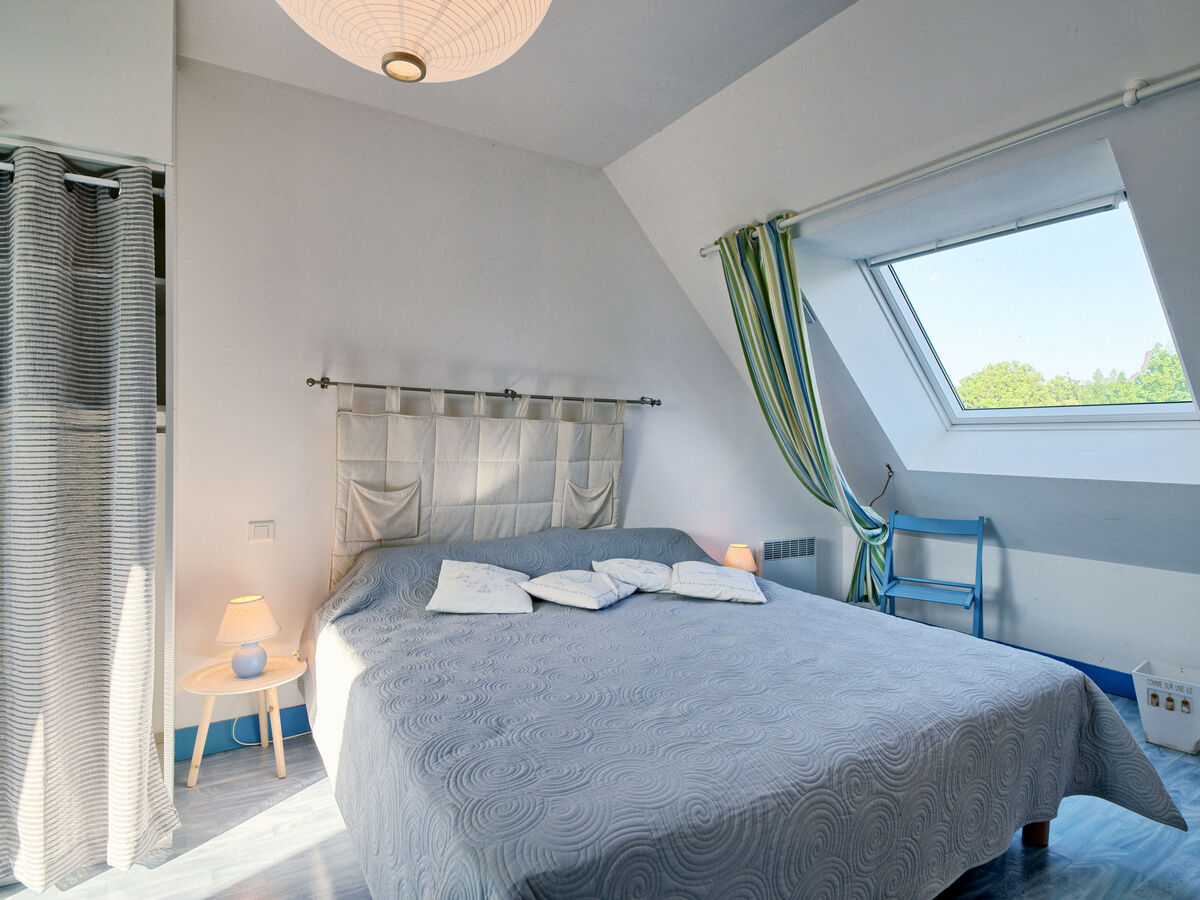 1 chambre, mansardée avec 1 grand-lit (140 cm, longueur 190 cm).