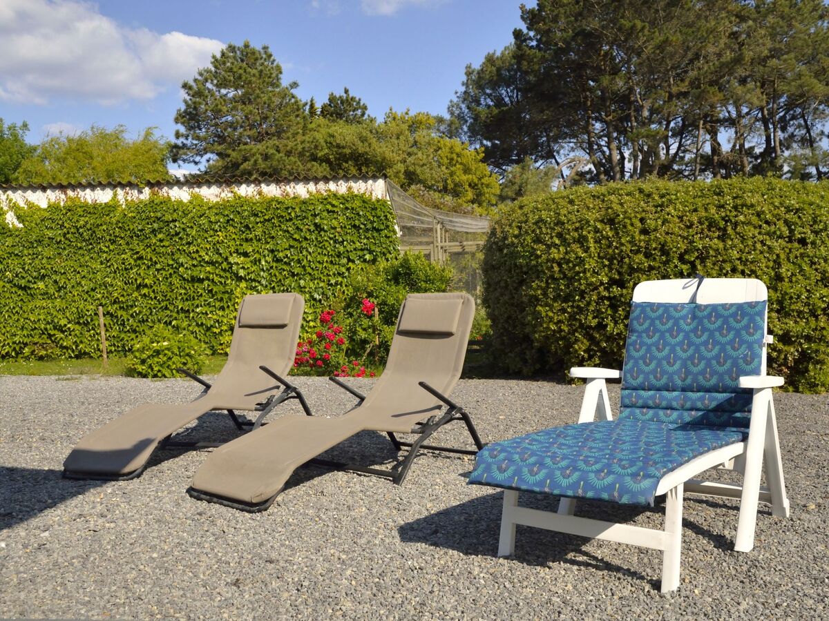 Meubles de terrasse, barbecue (portable), chaises longues (4), réduit.