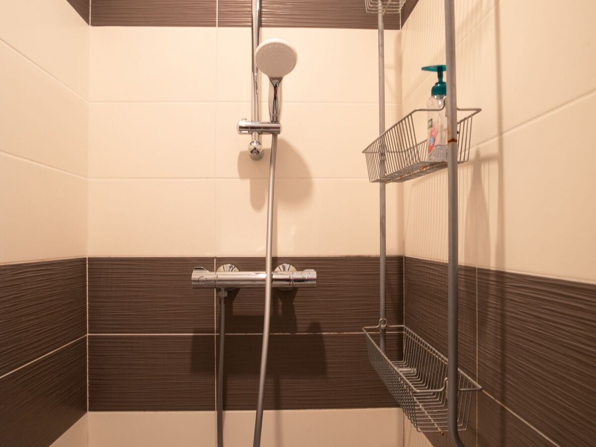 1 chambre avec 1 grand-lit (140 cm, longueur 190 cm), douche.