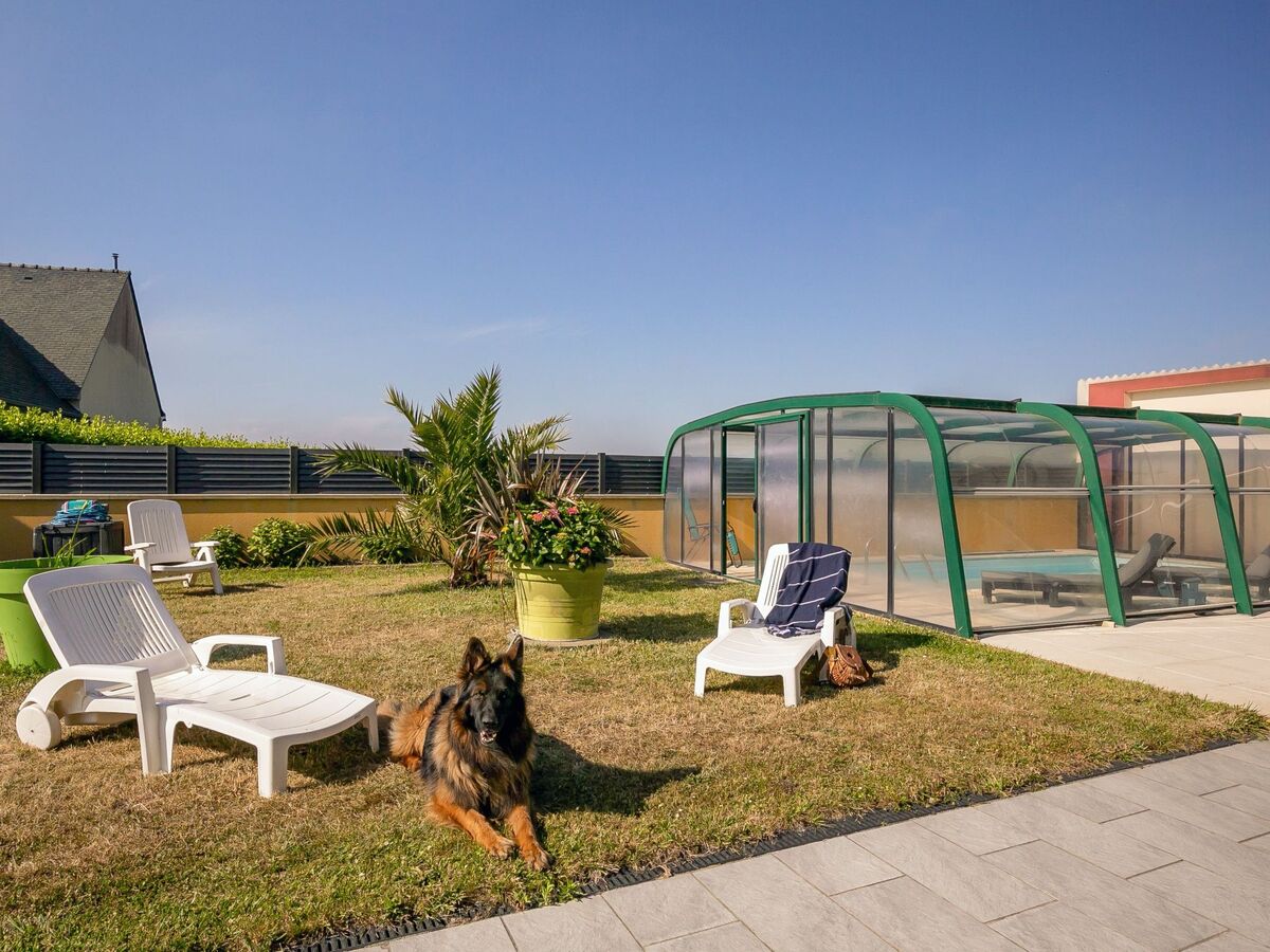 A usage privé: terrain 500 m2 (clôturé) avec pelouse et plantes, cour, piscine, piscine couverte rectangulaire, protégée (6 x 3 m, profondeur 120 cm, disponibilité saisonnière: 25.Avr.