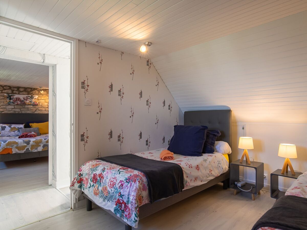 1 chambre, mansardée avec 2 lits (90 cm, longueur 190 cm), radiateur électrique.