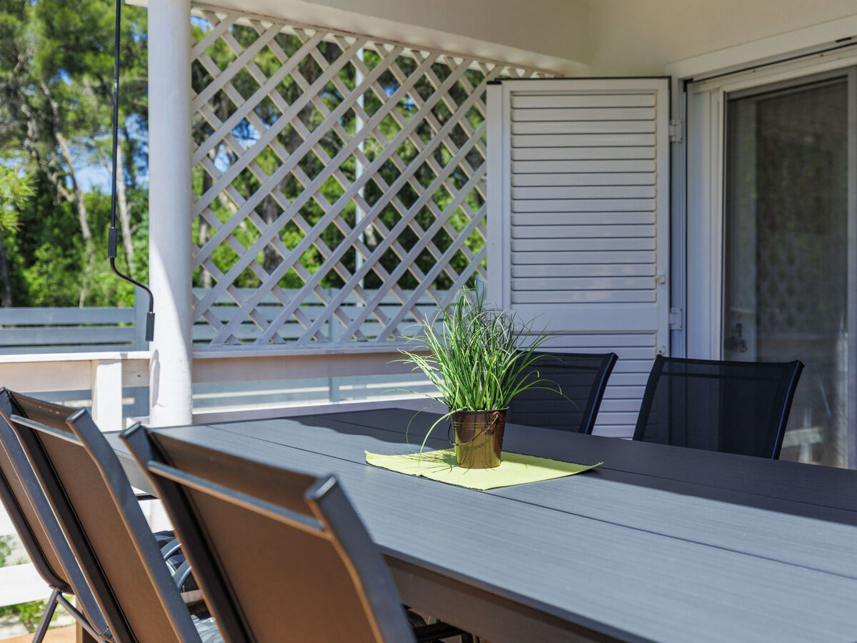 Terrasse (20 m2), meubles de jardin, barbecue, place de parking (pour 2 voitures) sur le terrain.