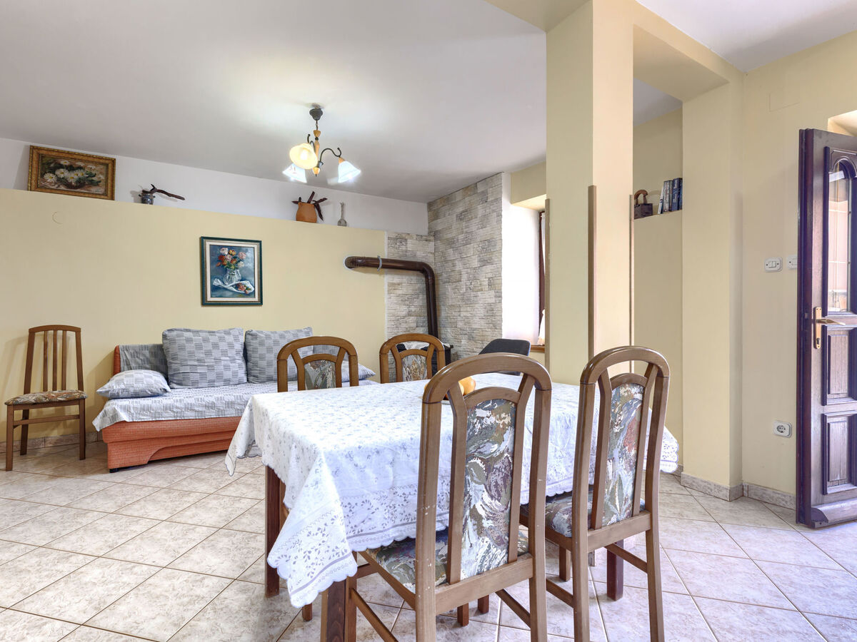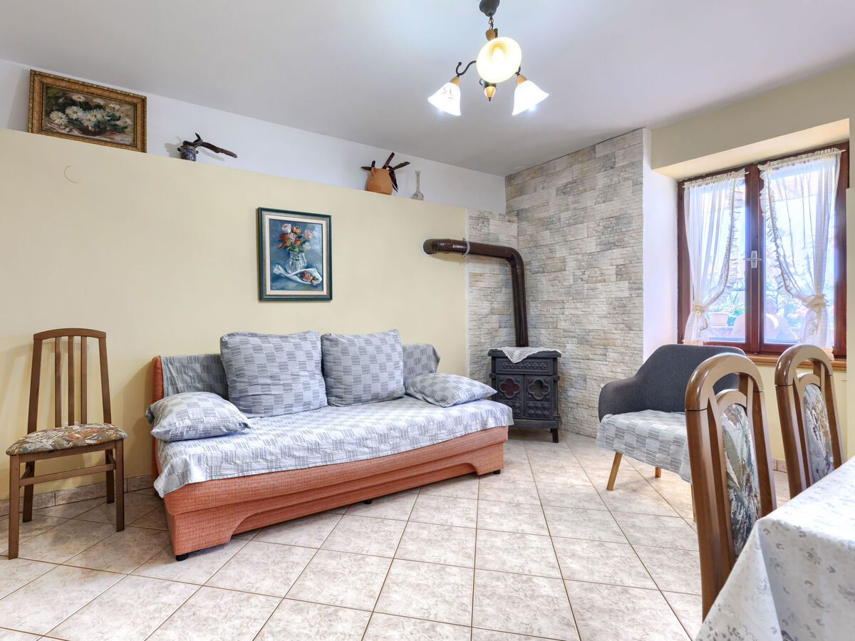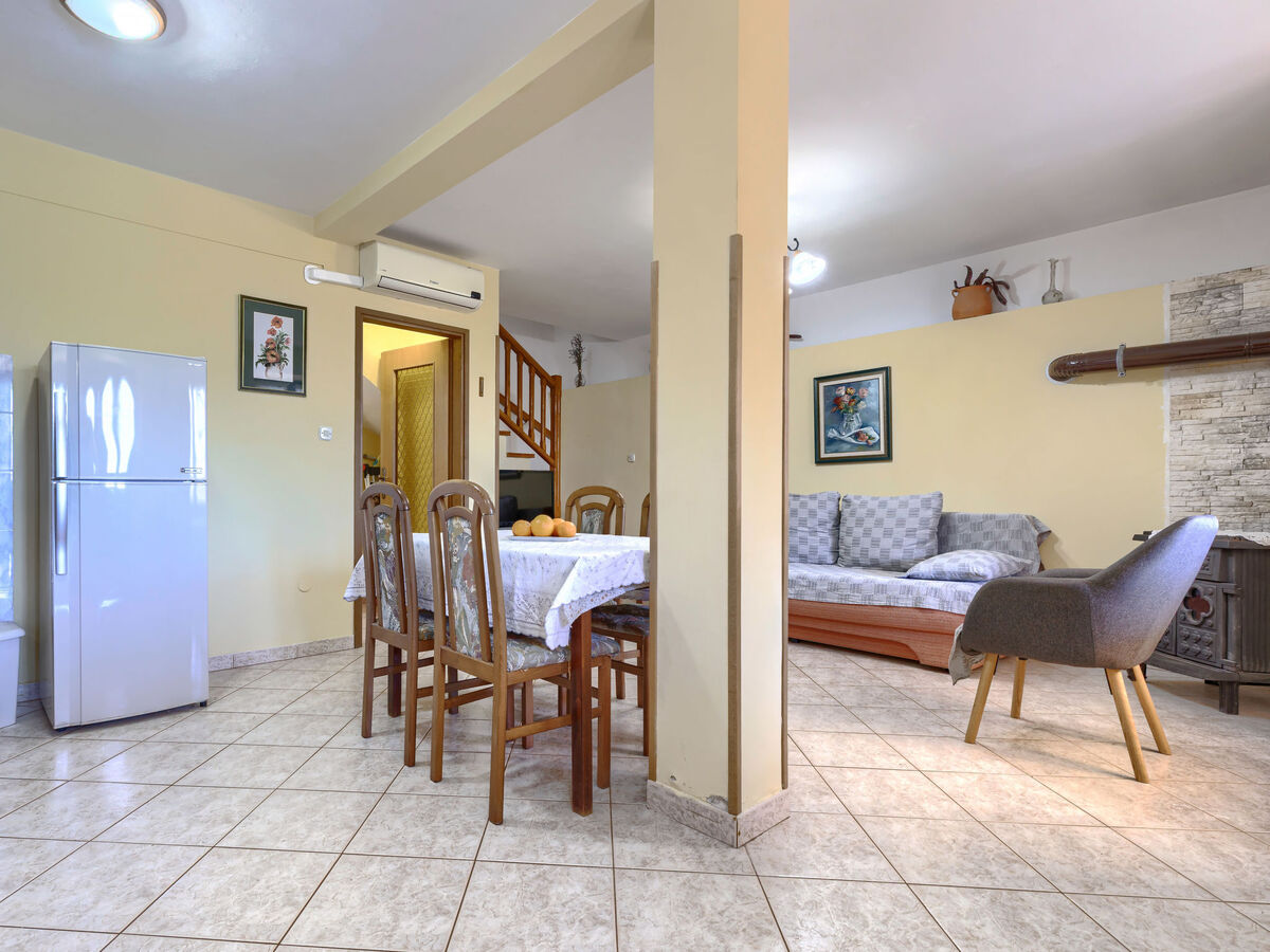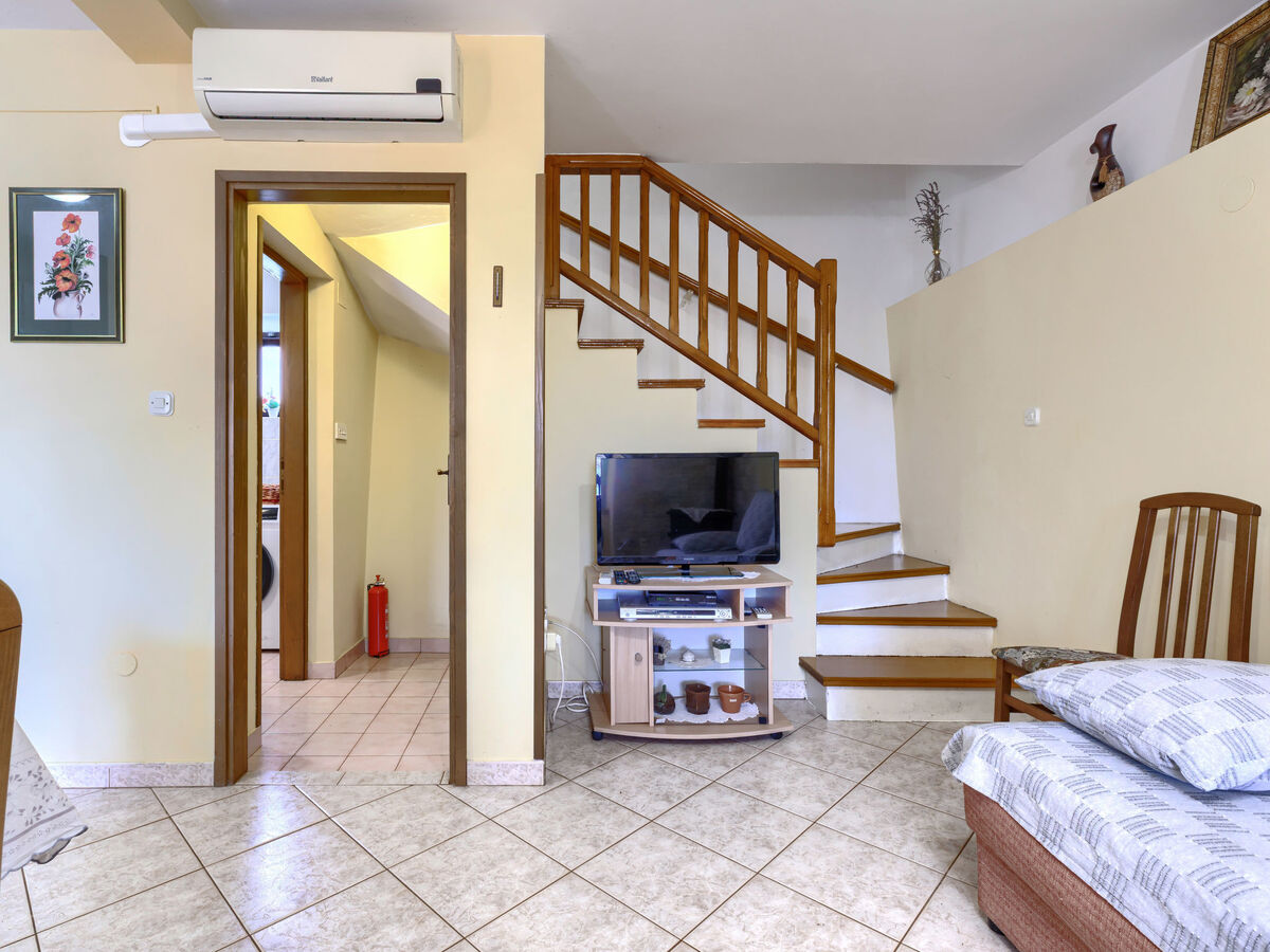 Séjour/salle à manger avec 1 divan-lit double (160 cm, longueur 200 cm), TV (satellite) et air-conditionné.